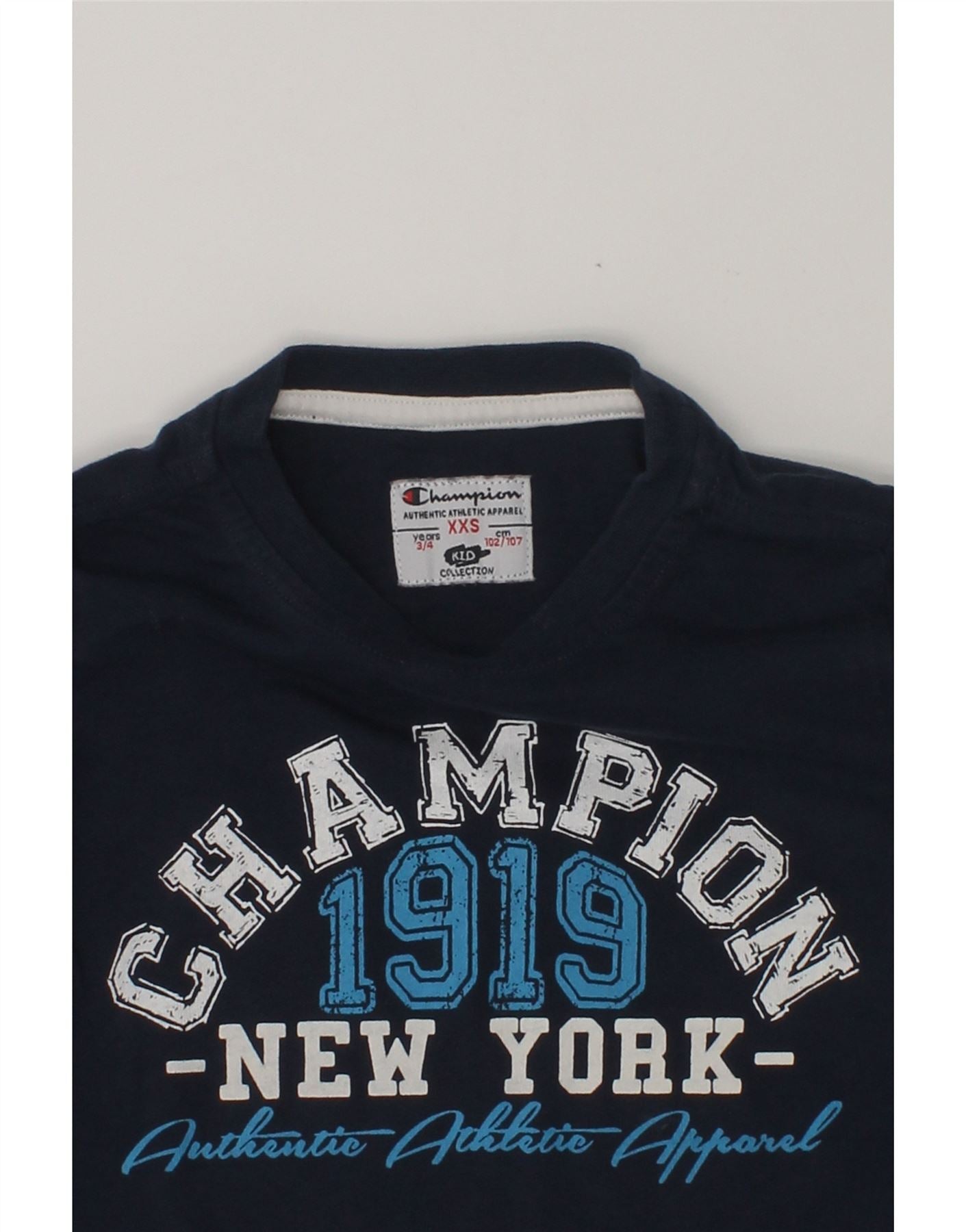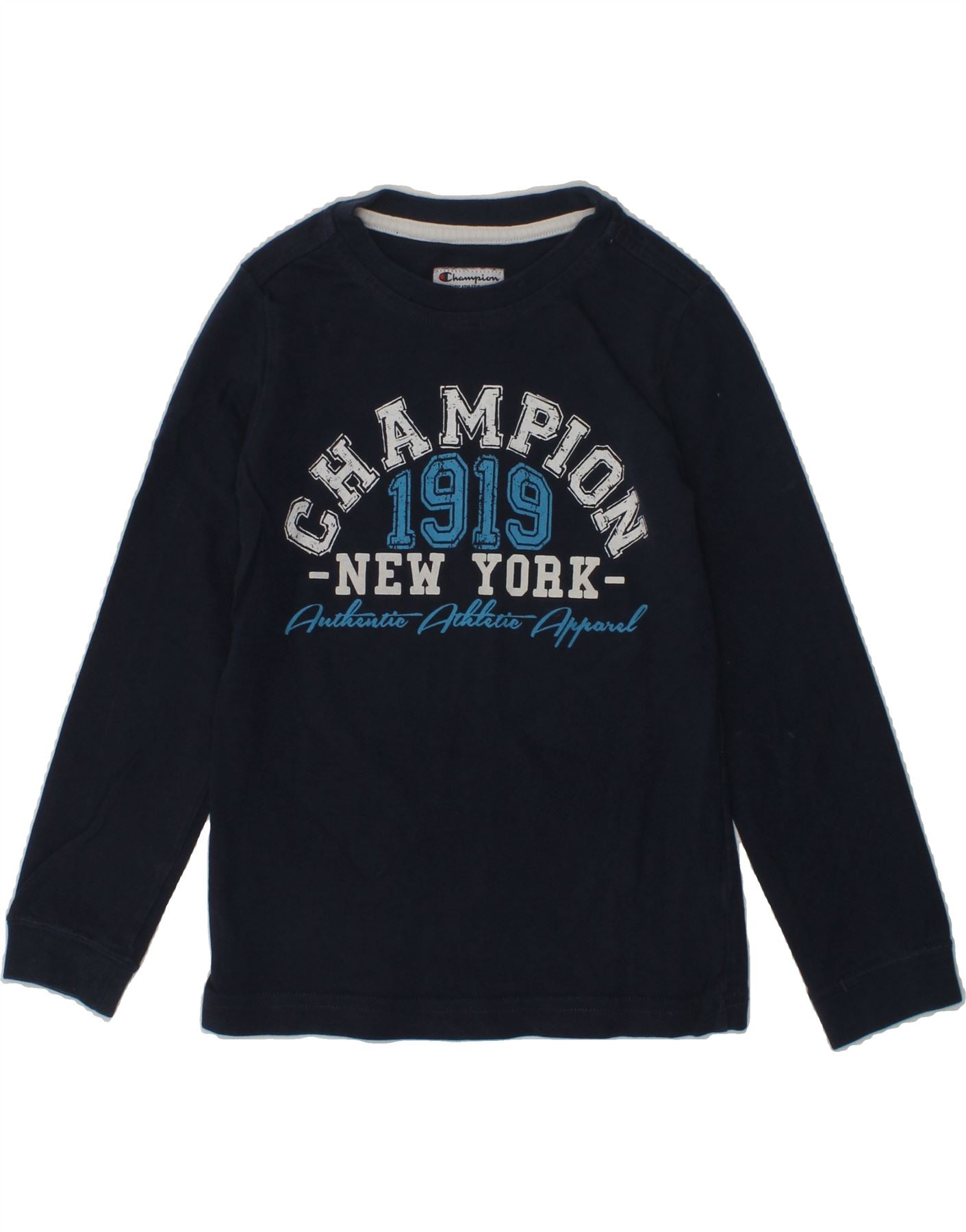 CHAMPION Boys Graphic Top Long Sleeve 3-4 Years 2XS Navy Blue