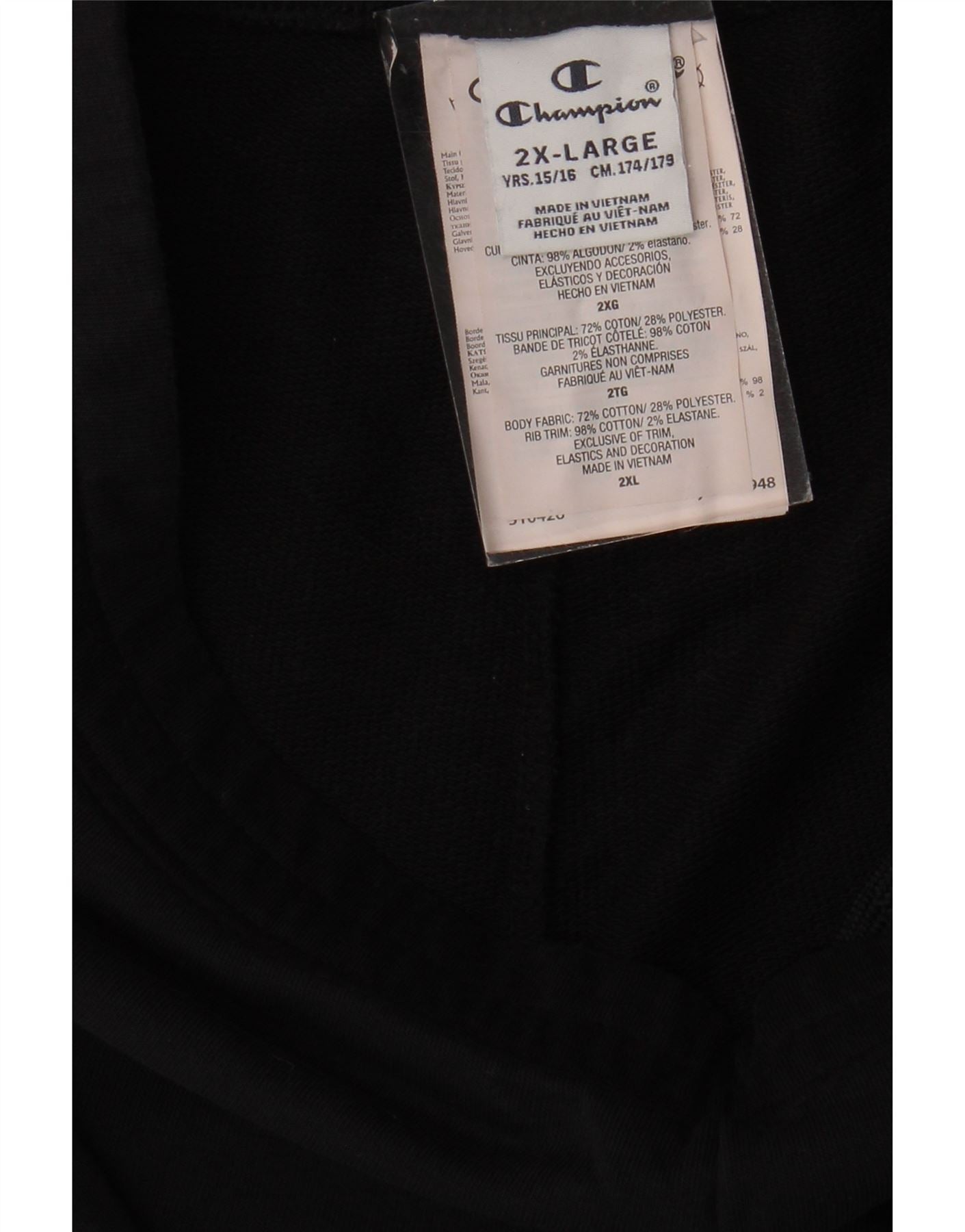 CHAMPION Boys Tracksuit Trousers Joggers 15-16 Years 2XL Black Cotton