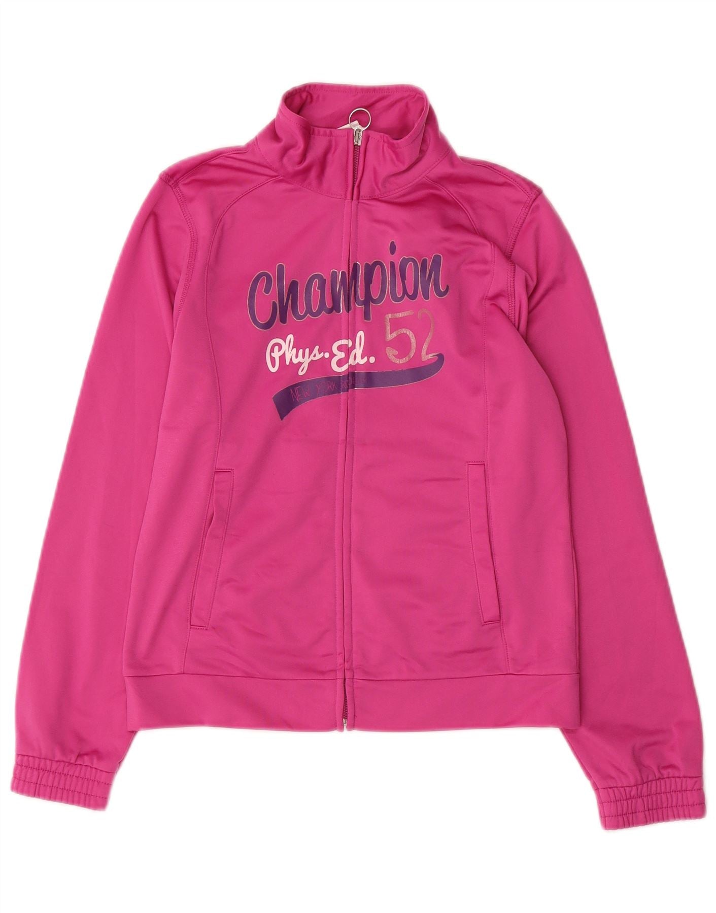 CHAMPION Girls Graphic Tracksuit Top Jacket 11-12 Years Large Pink
