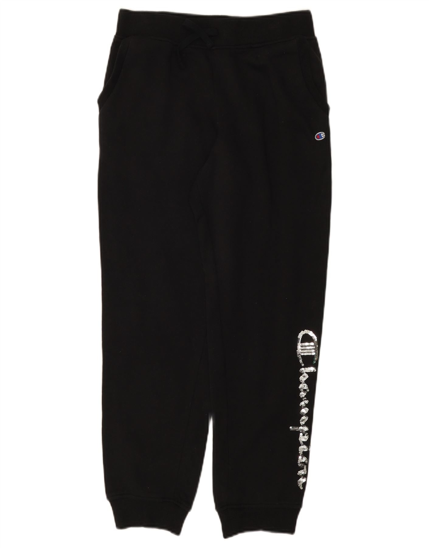 CHAMPION Girls Graphic Tracksuit Trousers Joggers 13-14 Years XL Black