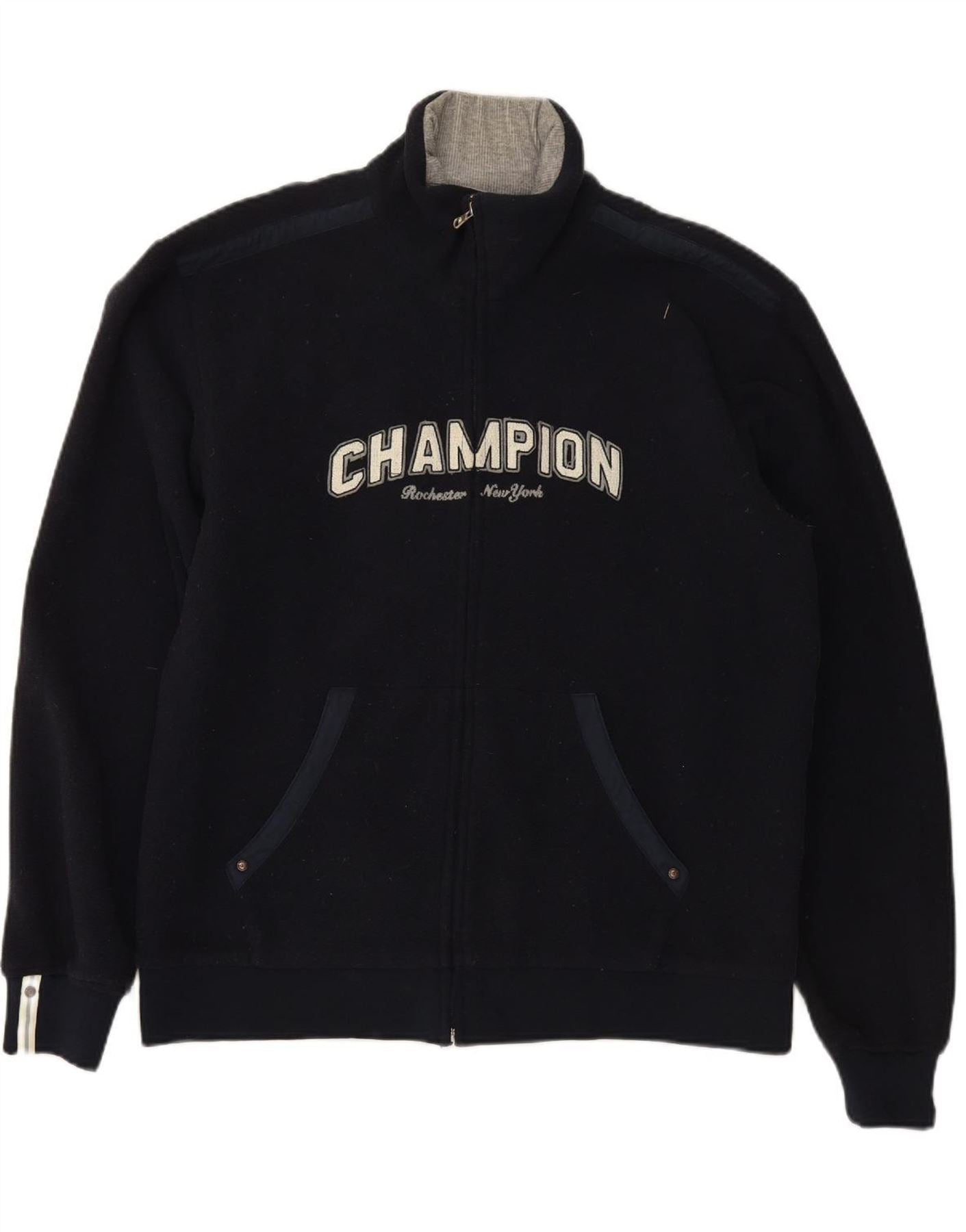 CHAMPION Mens Graphic Fleece Jacket UK 44 2XL Navy Blue Polyester