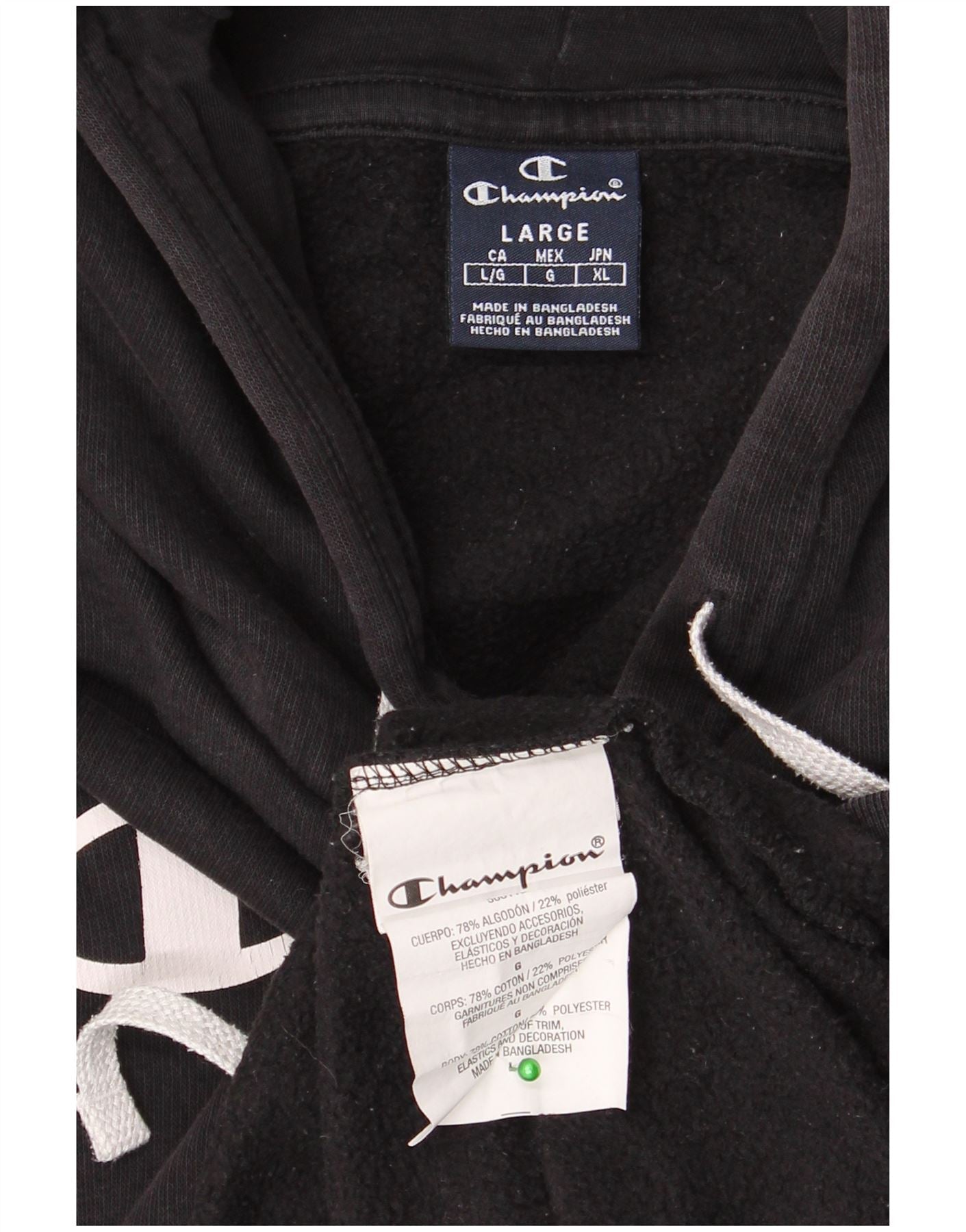 CHAMPION Mens Graphic Hoodie Jumper Large Black Cotton