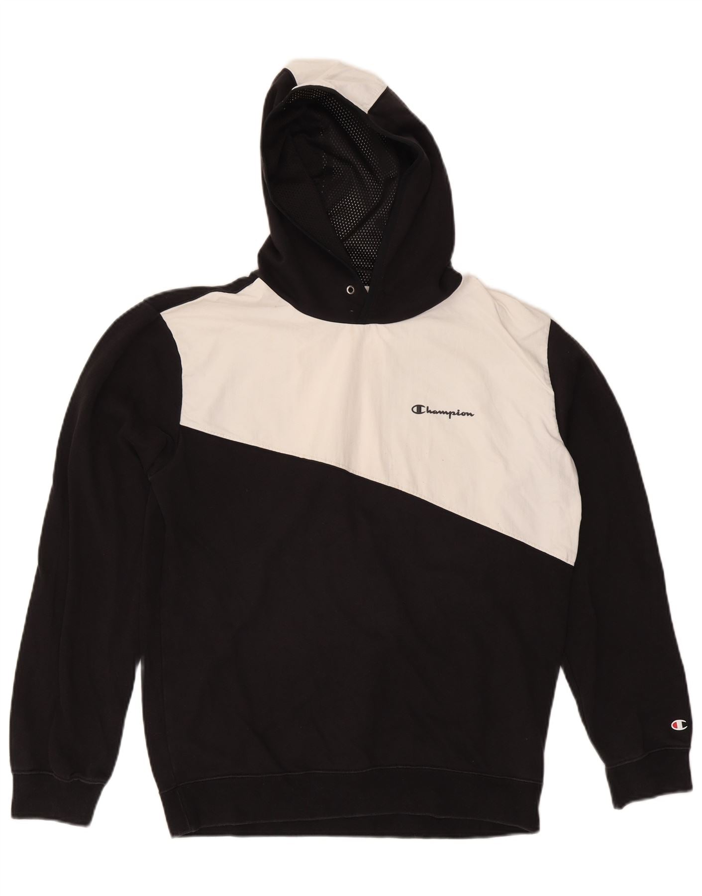 Home > Vintage Champion Clothing > Men's > Hoodie > CHAMPION Mens Graphic Hoodie Jumper XL Black Colourblock
