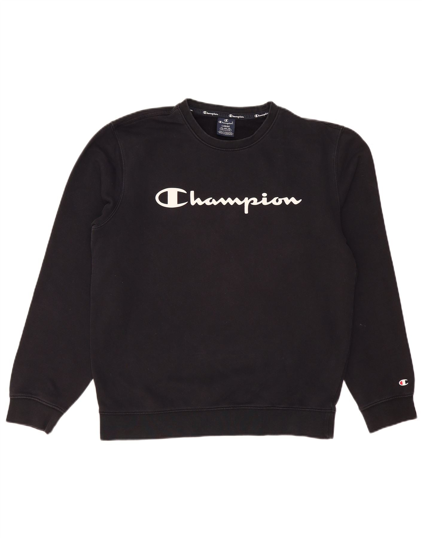 CHAMPION Mens Graphic Sweatshirt Jumper Large Navy Blue Cotton