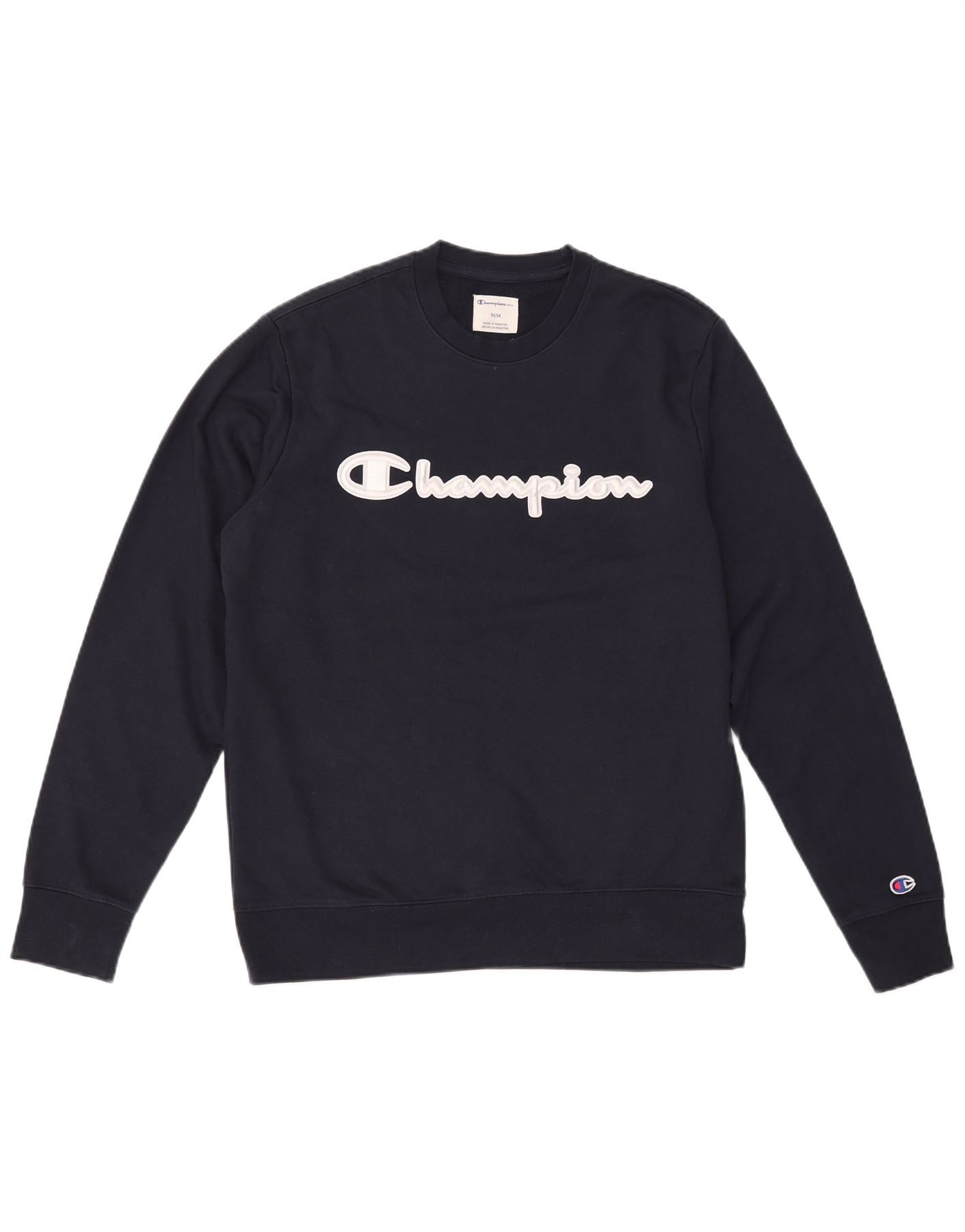 CHAMPION Mens Graphic Sweatshirt Jumper Medium Navy Blue Cotton