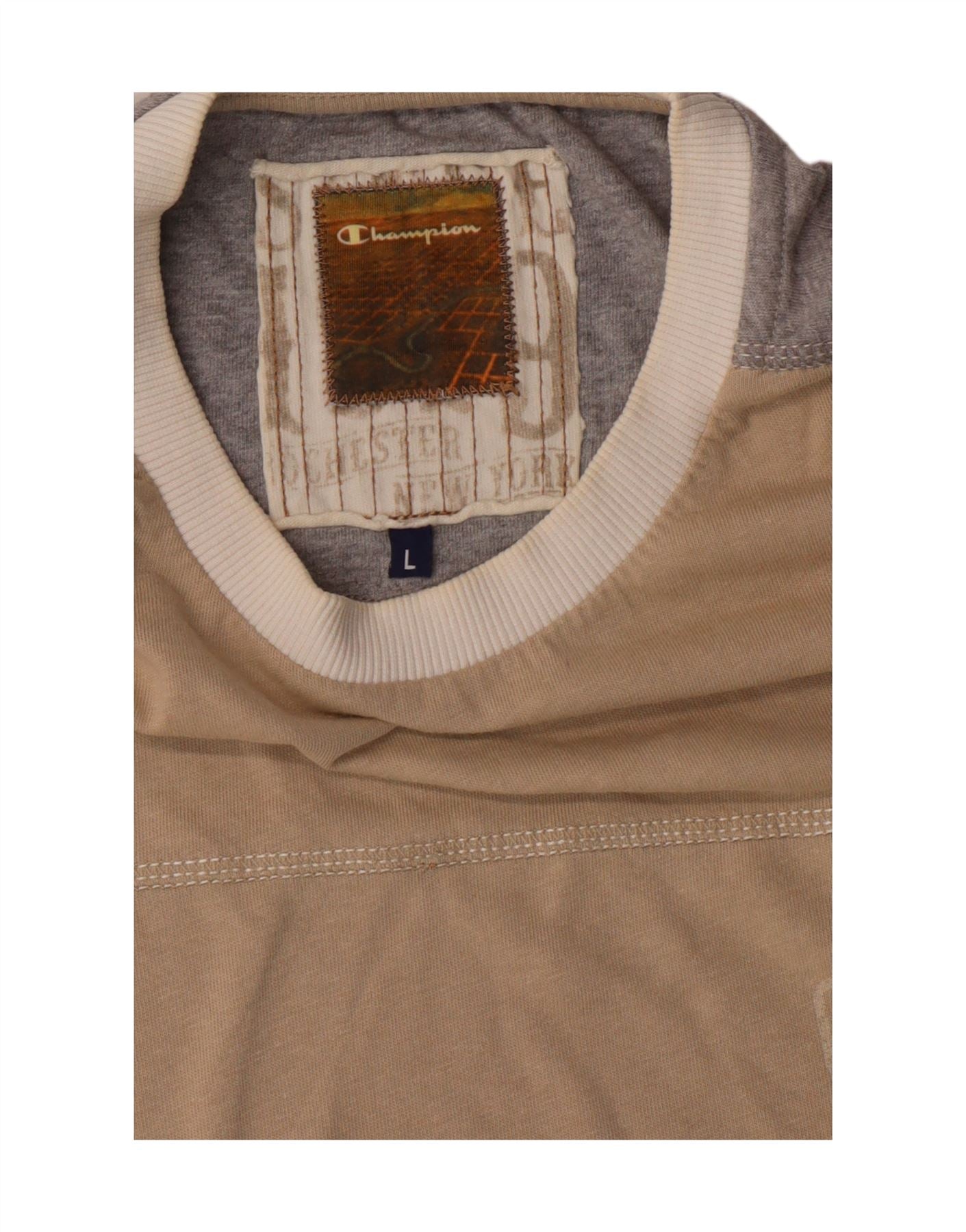 Champion Mens Graphic T-Shirt Top Large Beige Colourblock