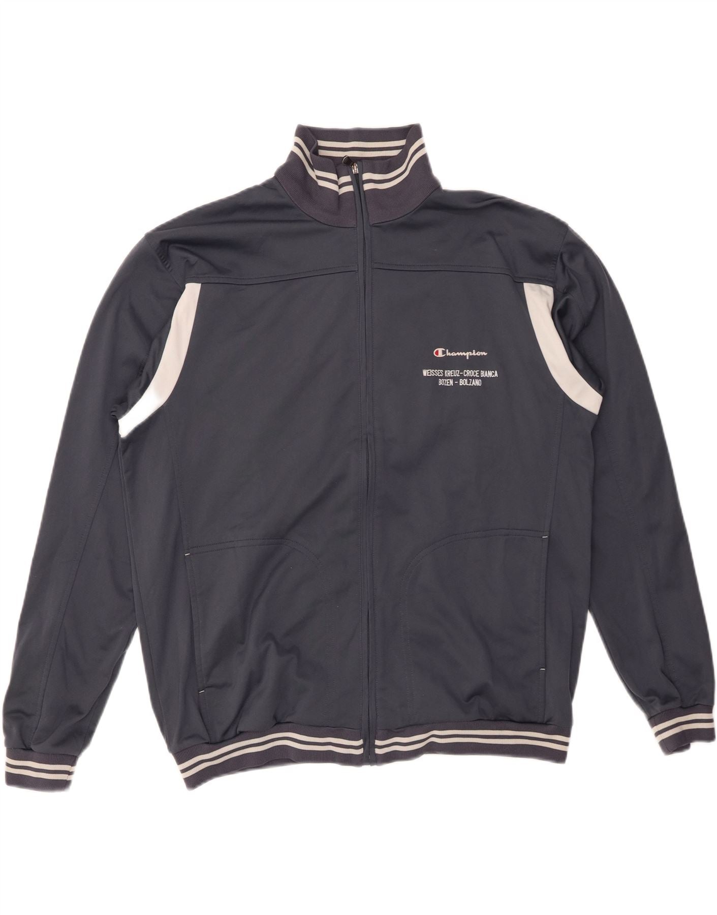 CHAMPION Mens Graphic Tracksuit Top Jacket Large Grey Colourblock