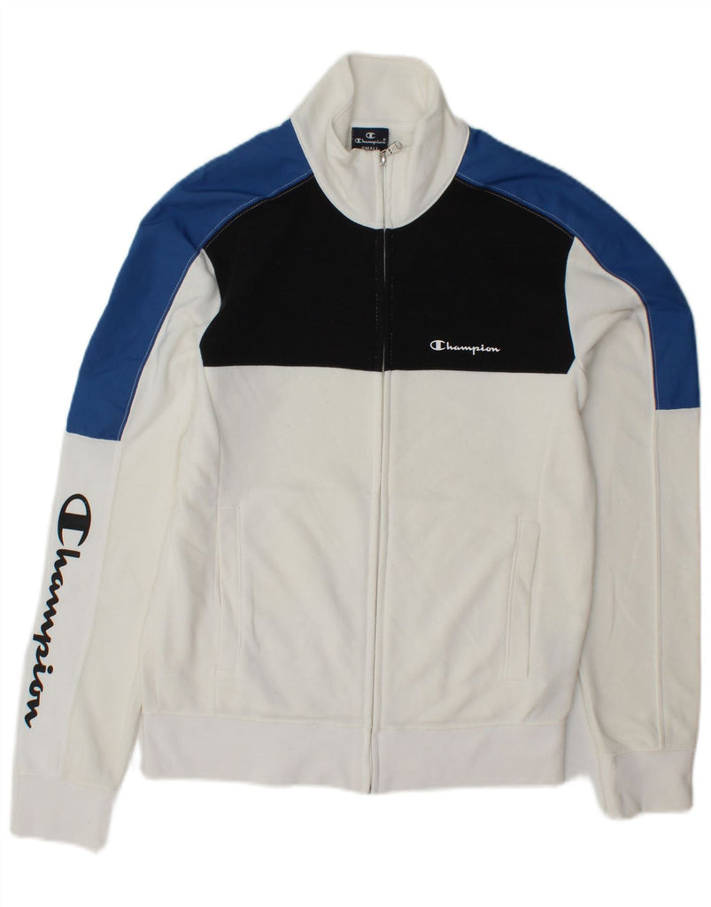 CHAMPION Mens Graphic Tracksuit Top Jacket Small White Colourblock Cotton