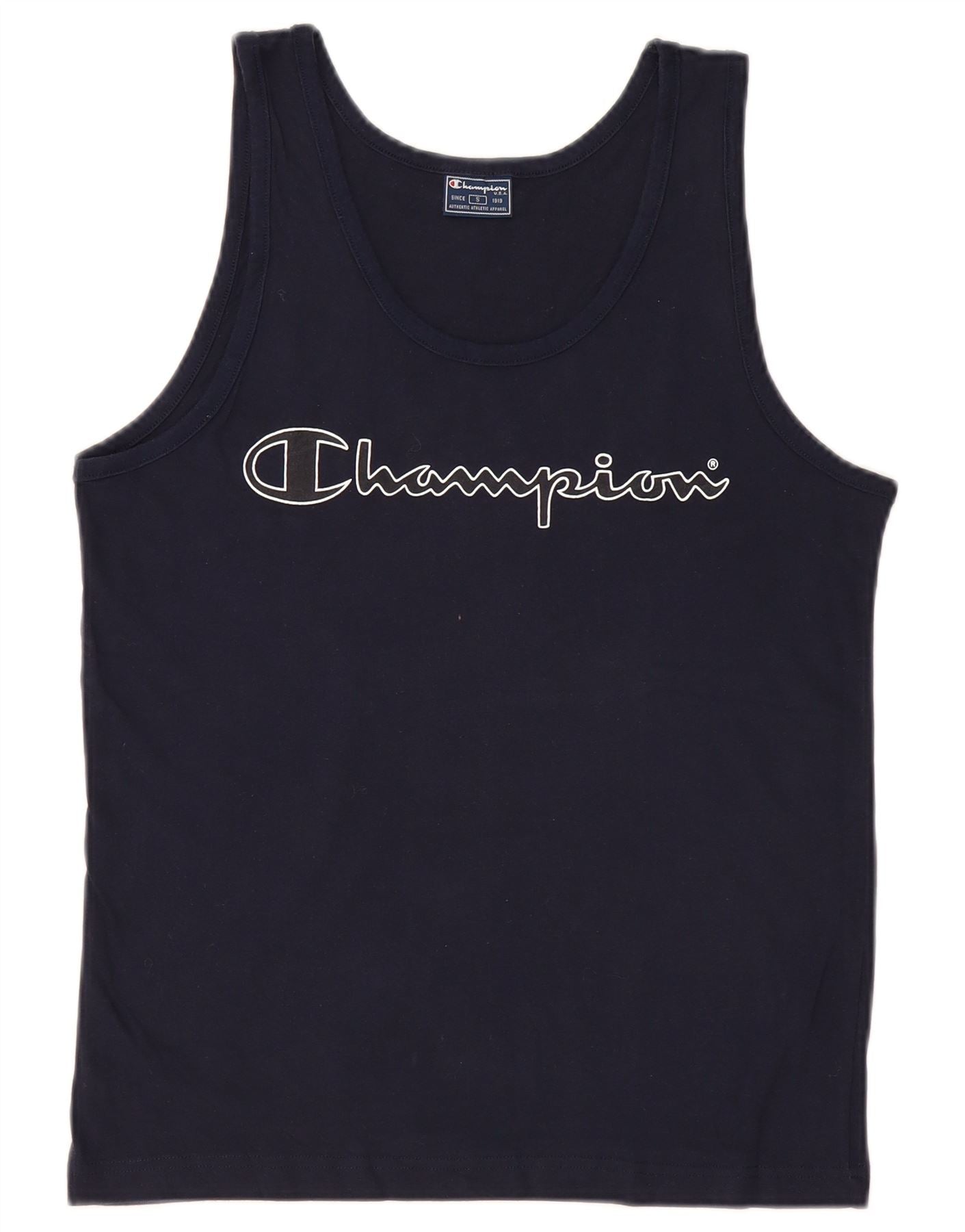 Champion Mens Graphic Vest Top Small Navy Blue Cotton