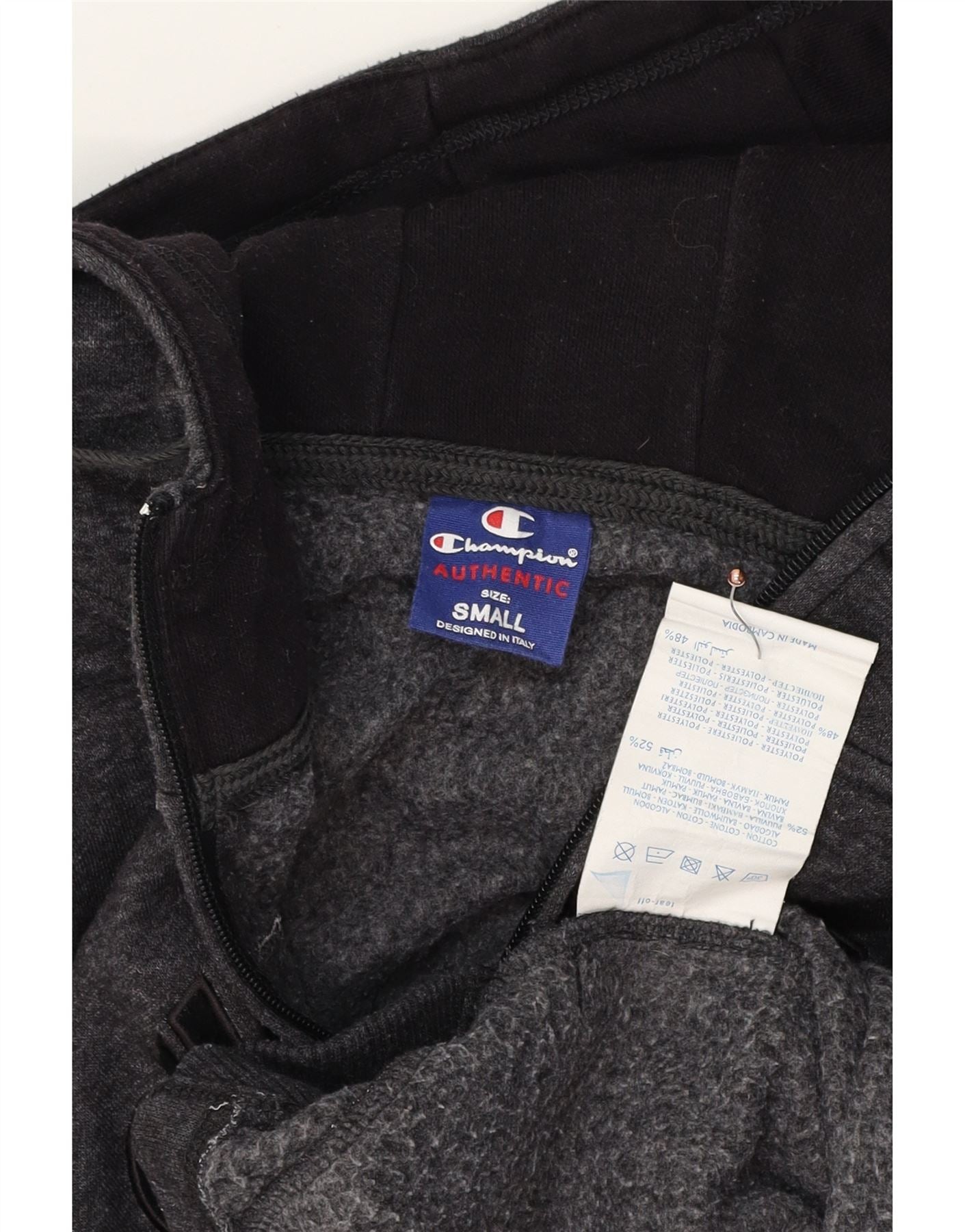 CHAMPION Mens Graphic Zip Hoodie Sweater Small Grey Flecked Cotton