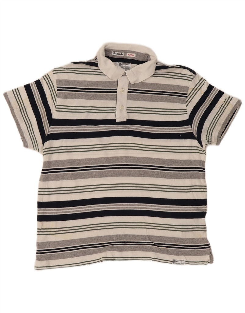 CHAMPION Mens Heritage Fit Polo Shirt XL Multicoloured Striped Cotton