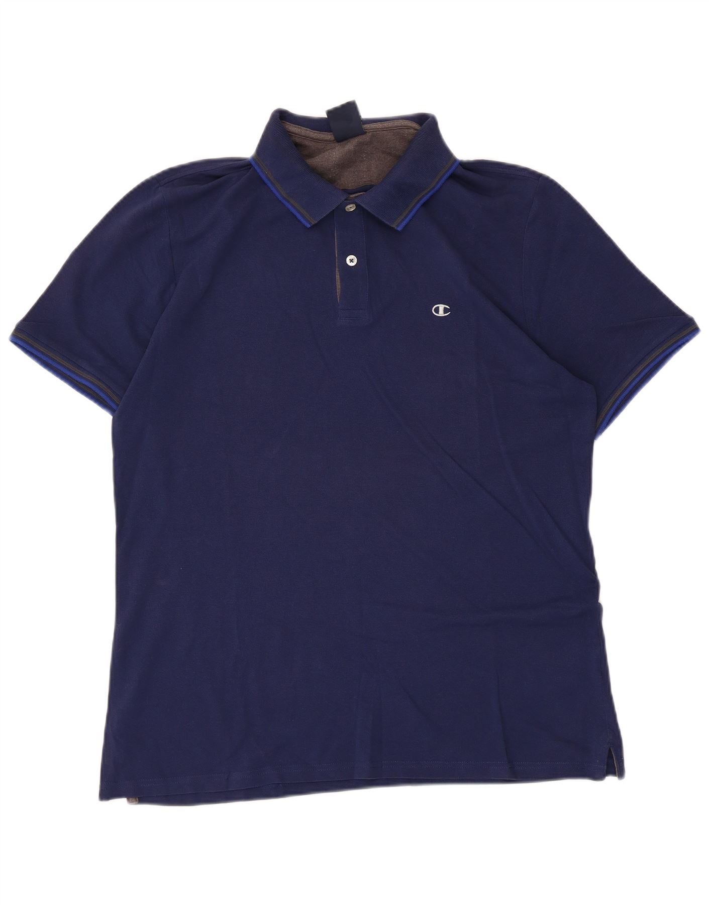CHAMPION Mens Polo Shirt Large Navy Blue Cotton
