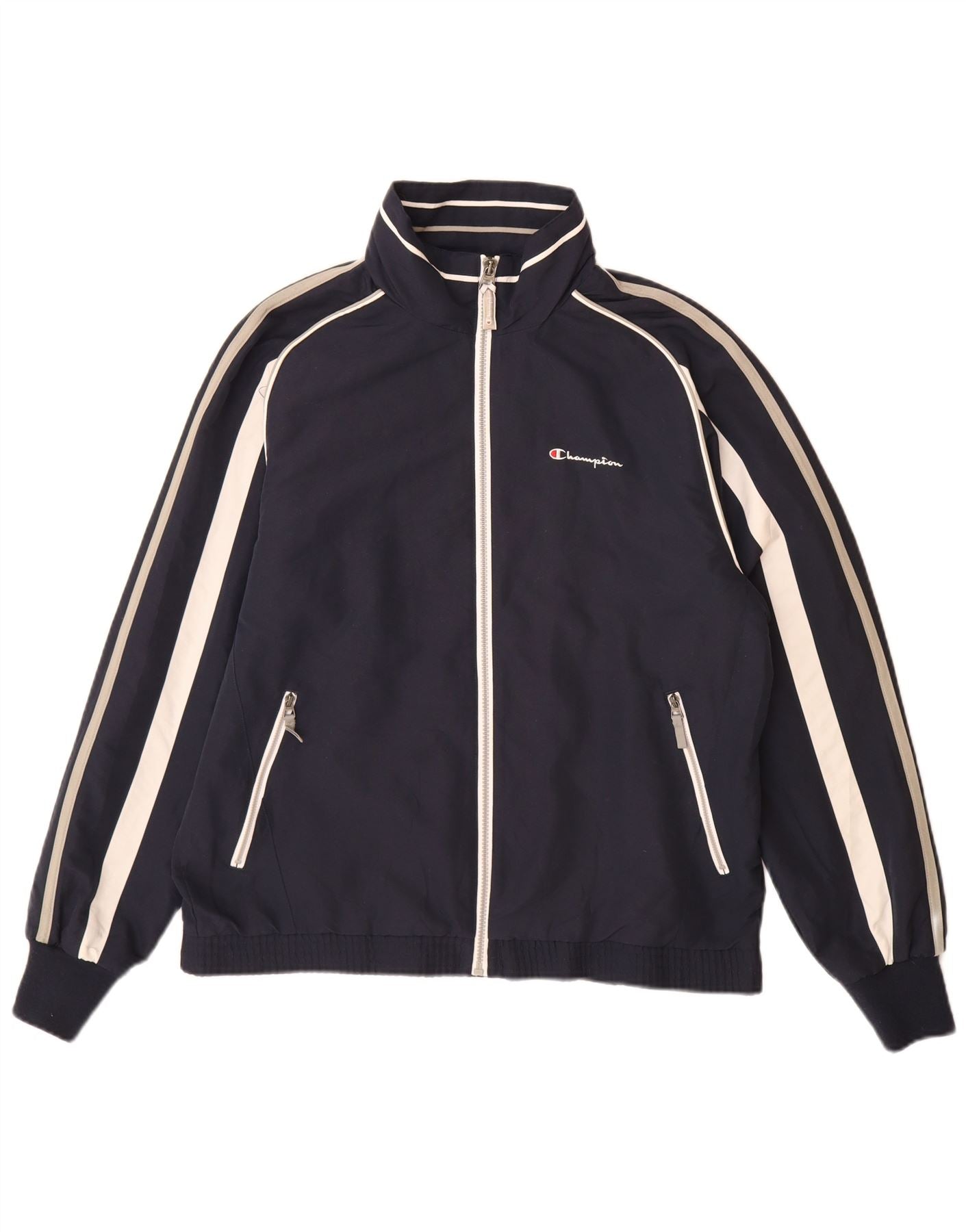 CHAMPION Mens Tracksuit Top Jacket Medium Navy Blue Colourblock Polyester