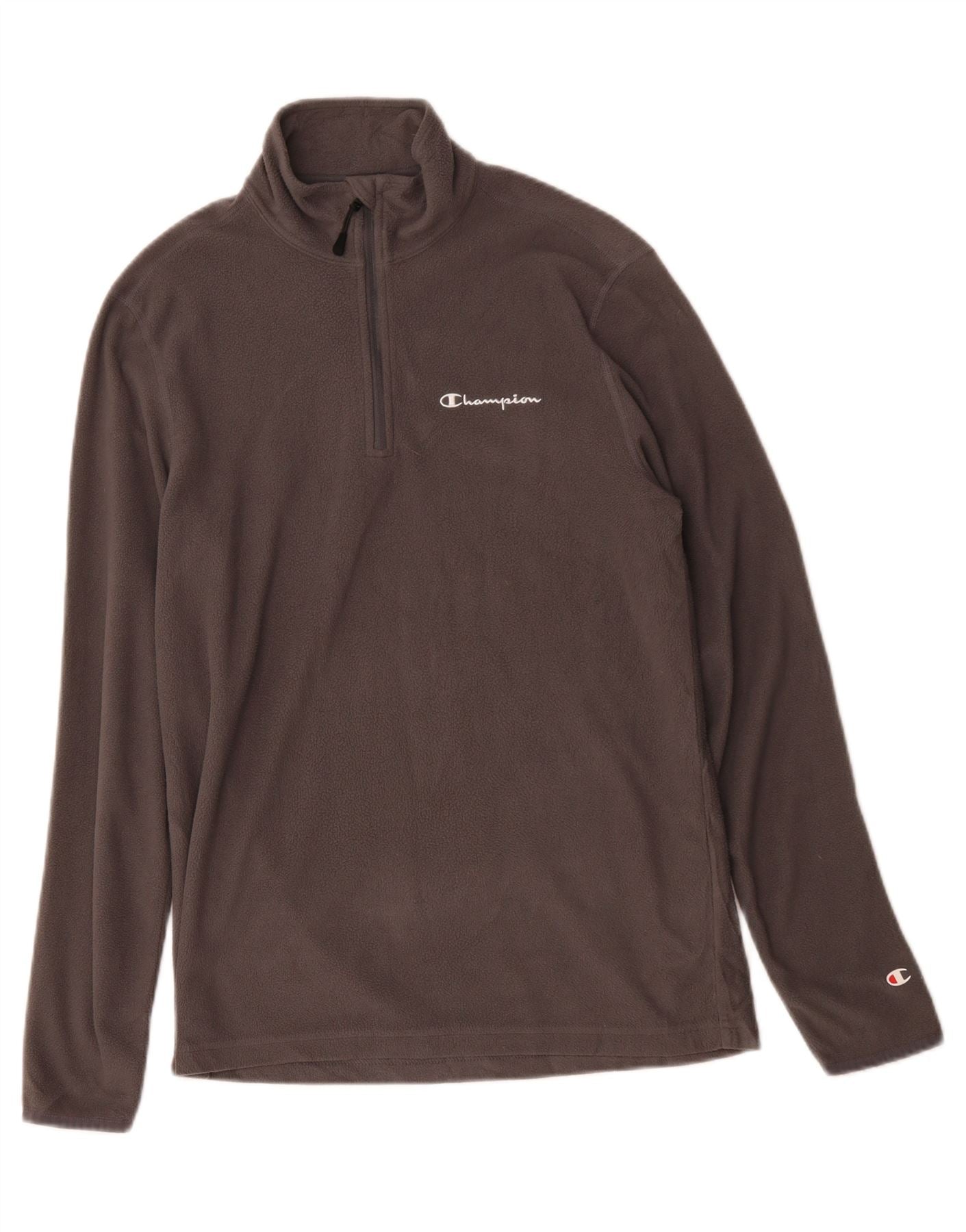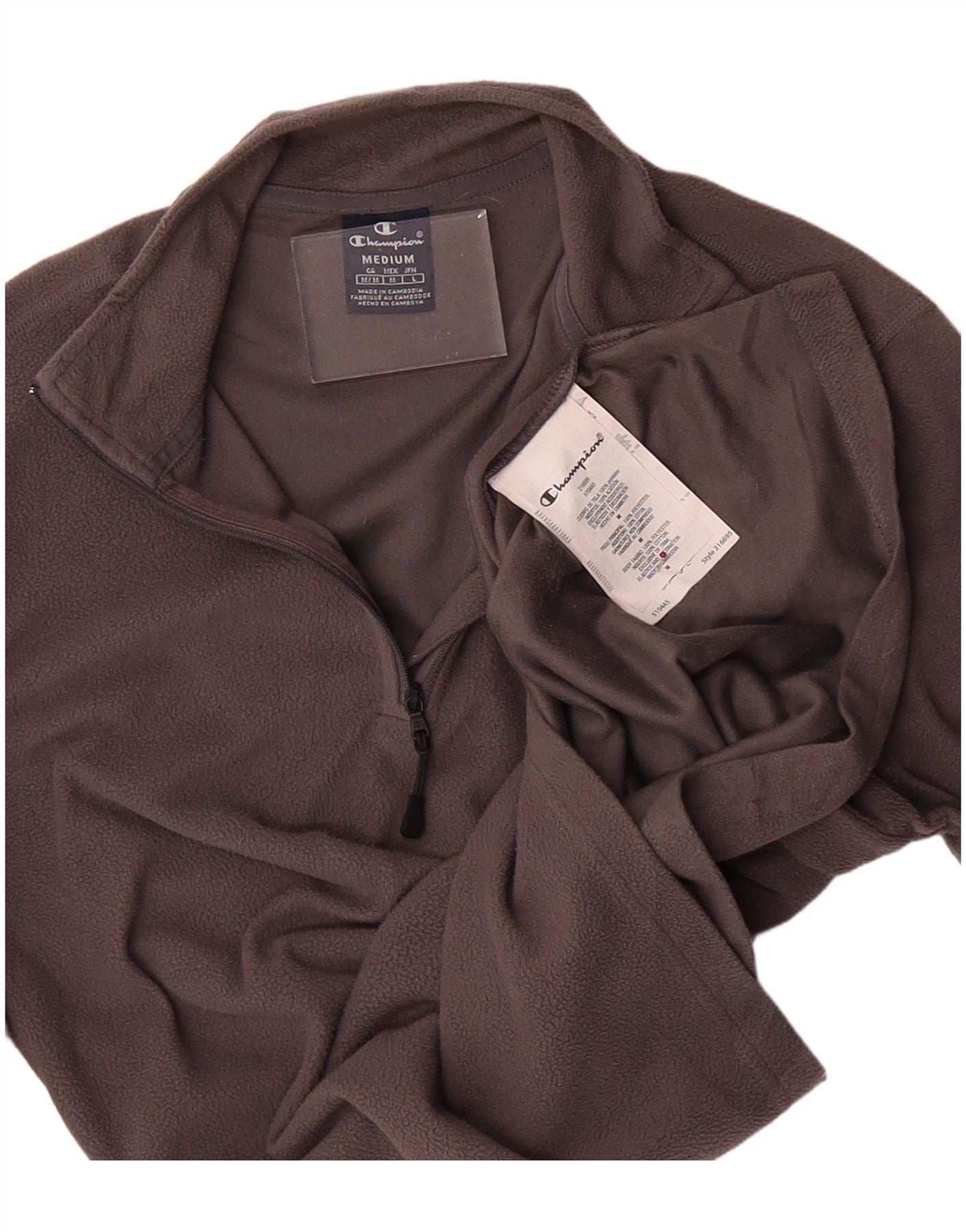 CHAMPION Mens Zip Neck Fleece Jumper Medium Brown Polyester