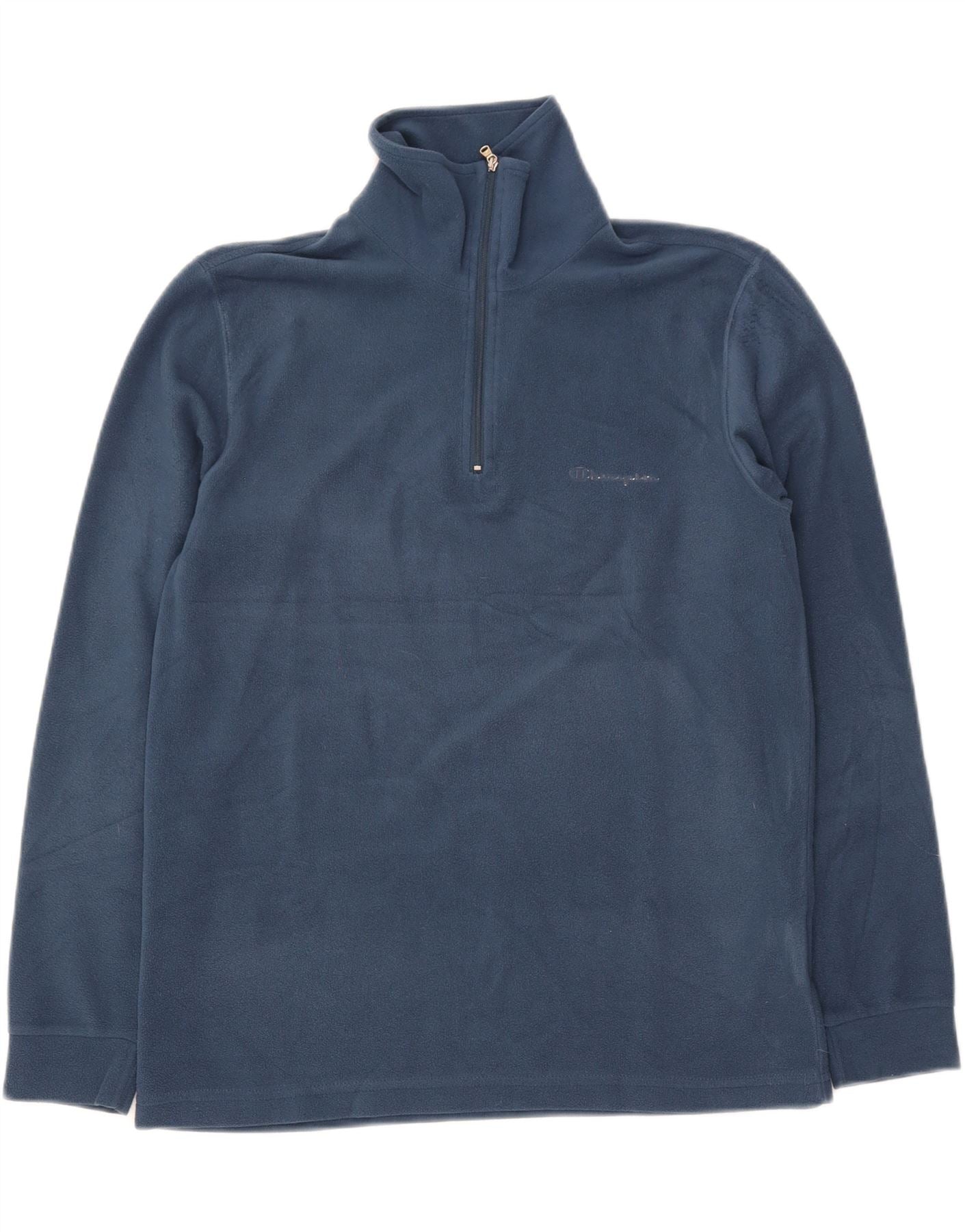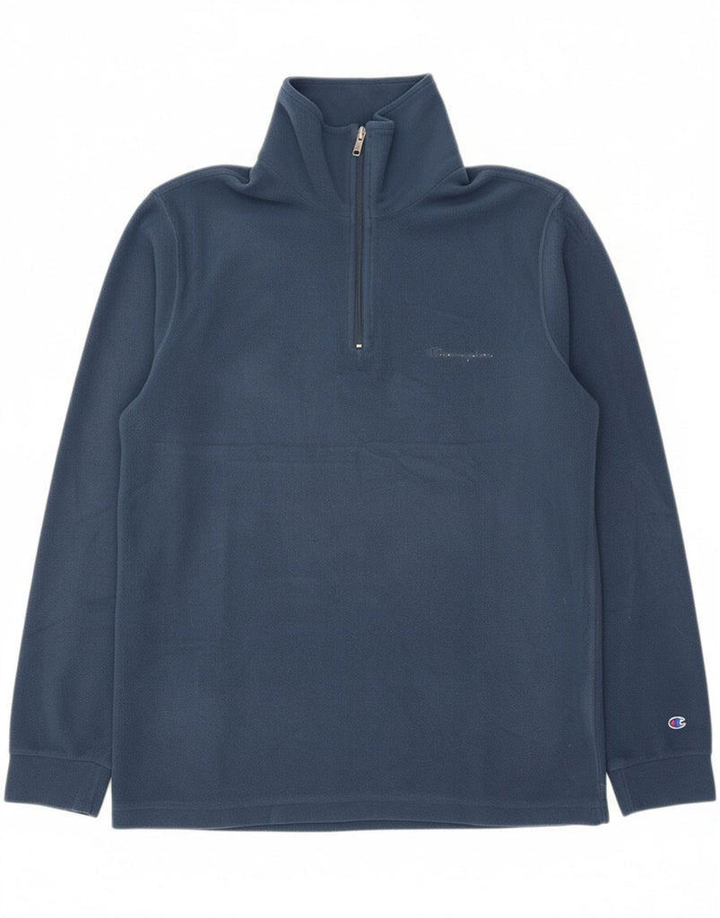 CHAMPION Mens Zip Neck Fleece Jumper Small Navy Blue Polyester