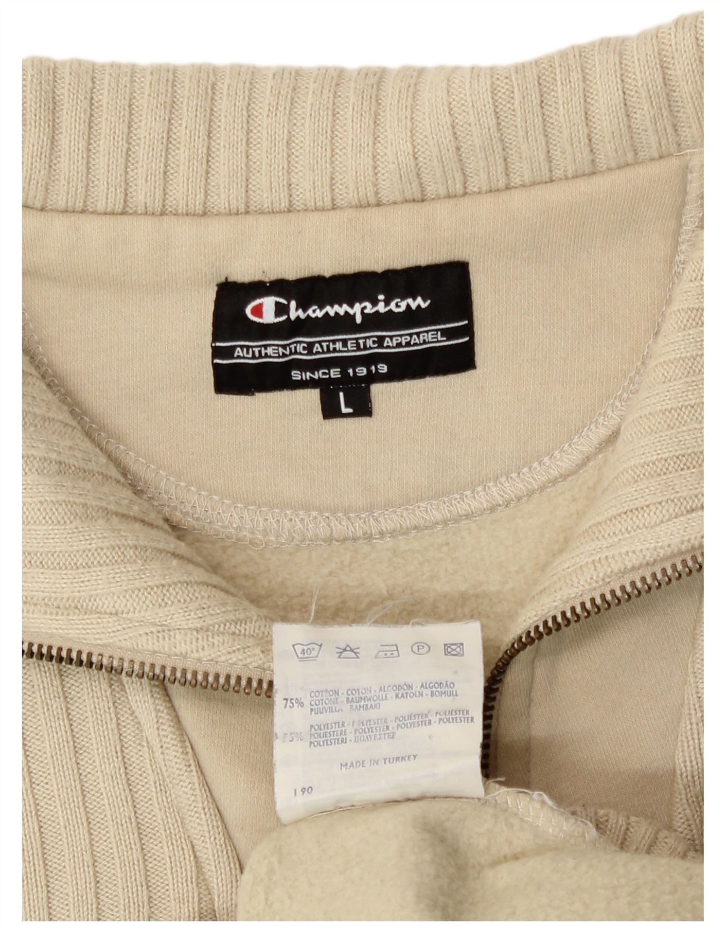 Champion Mens Zip Neck Sweatshirt Jumper Large Beige Cotton