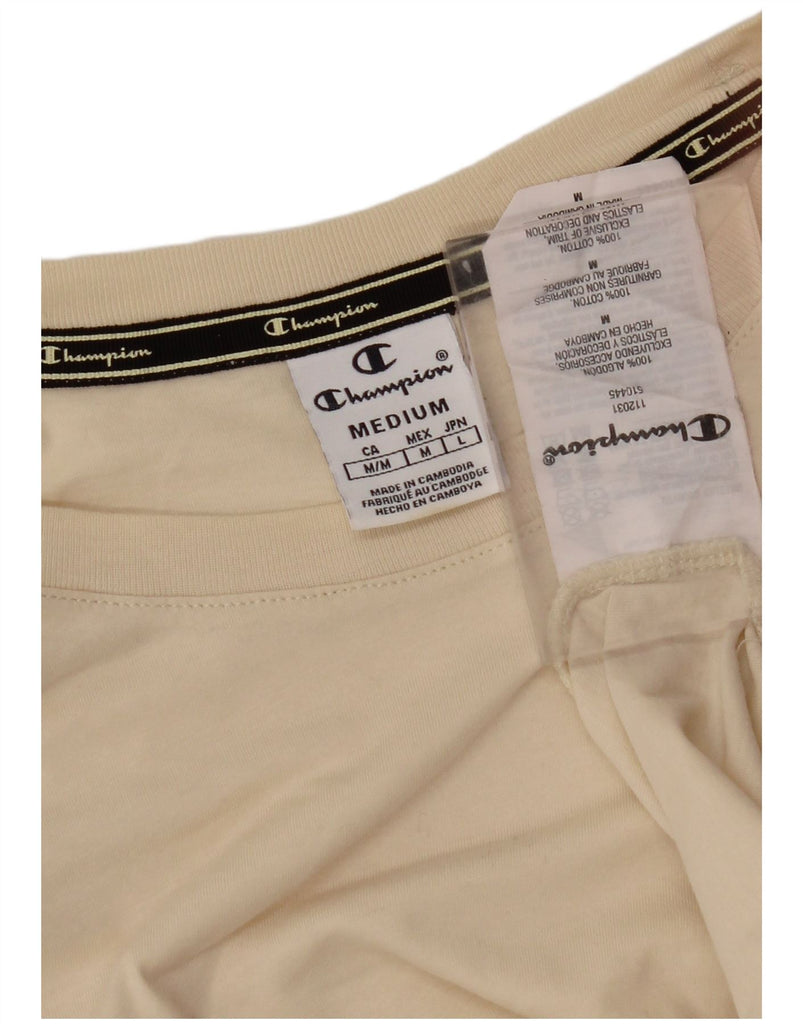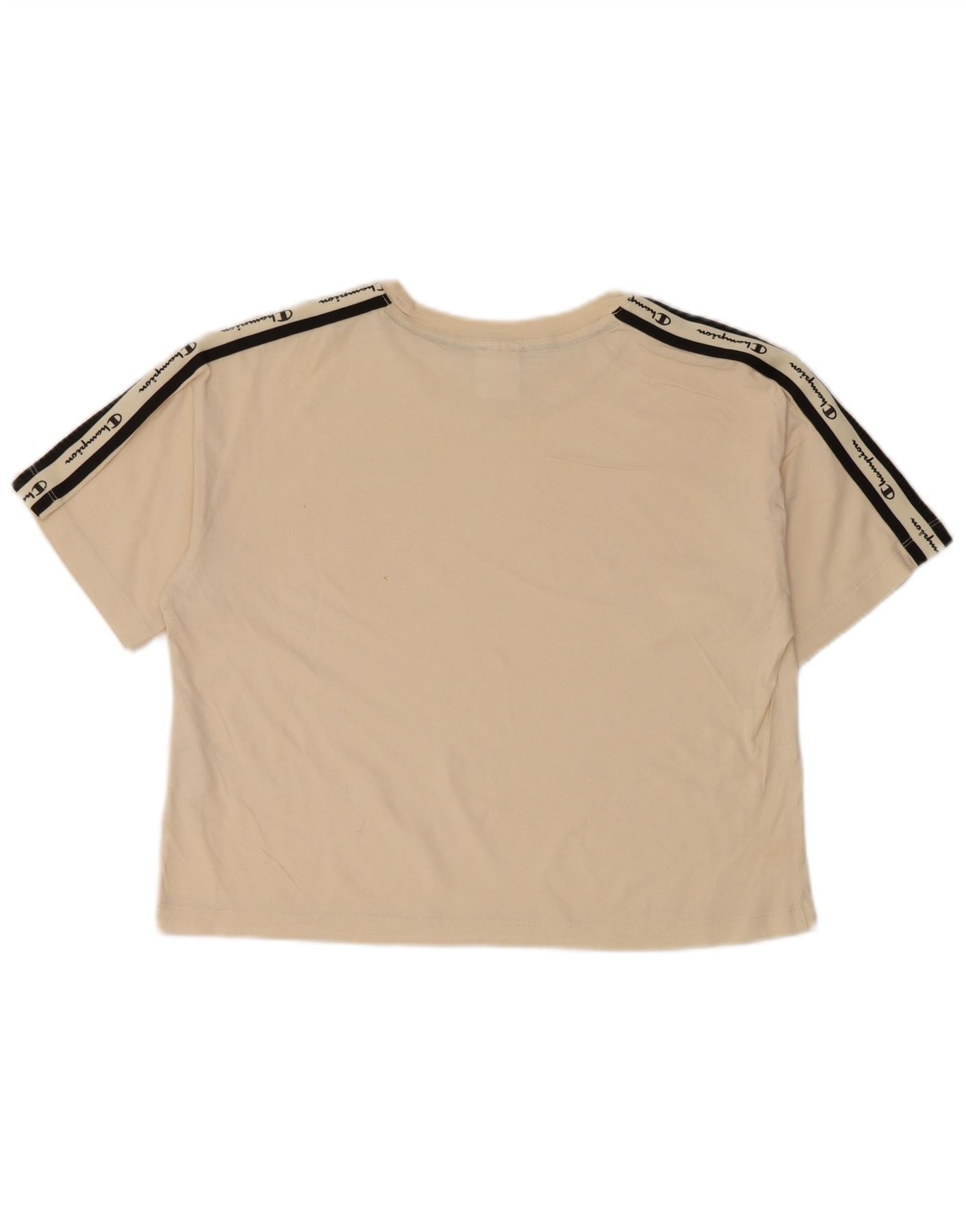 CHAMPION Womens Crop Graphic T-Shirt Top UK 14 Medium Beige Cotton