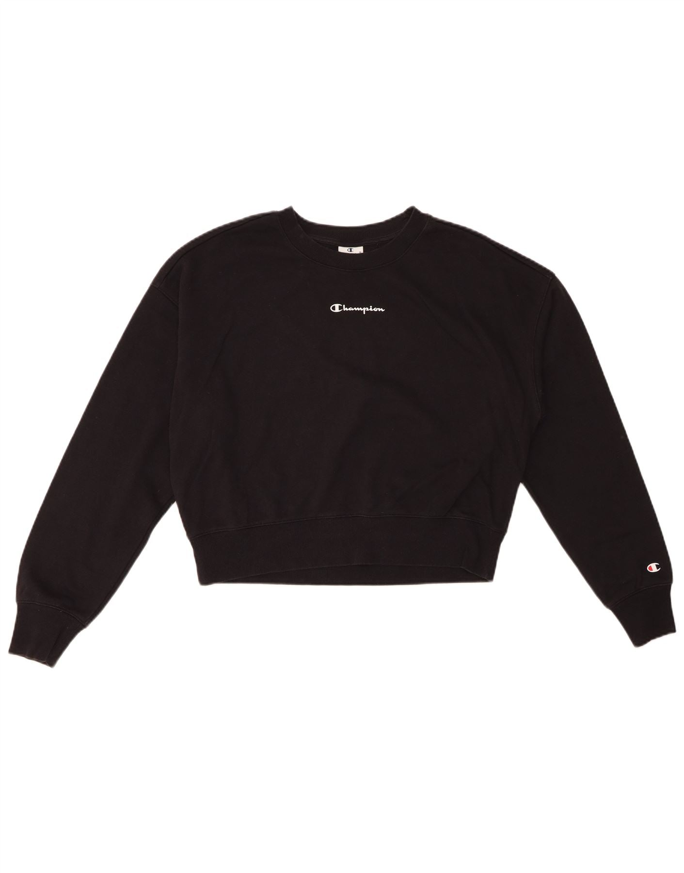 CHAMPION Womens Crop Sweatshirt Jumper UK 16 Large Black Cotton