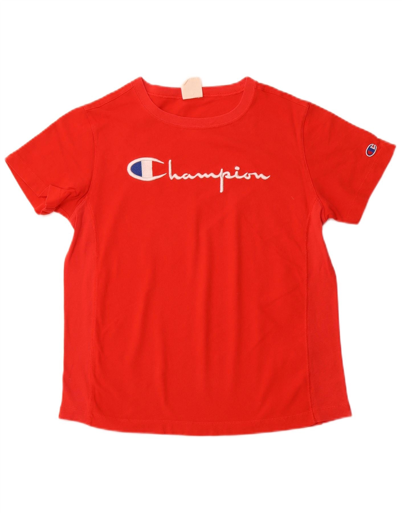 CHAMPION Womens Graphic T-Shirt Top UK 12 Medium Red Cotton