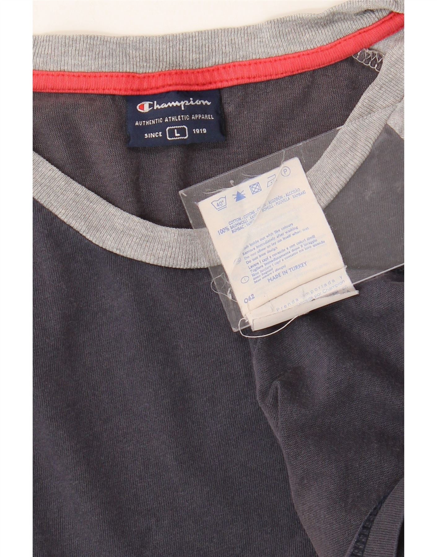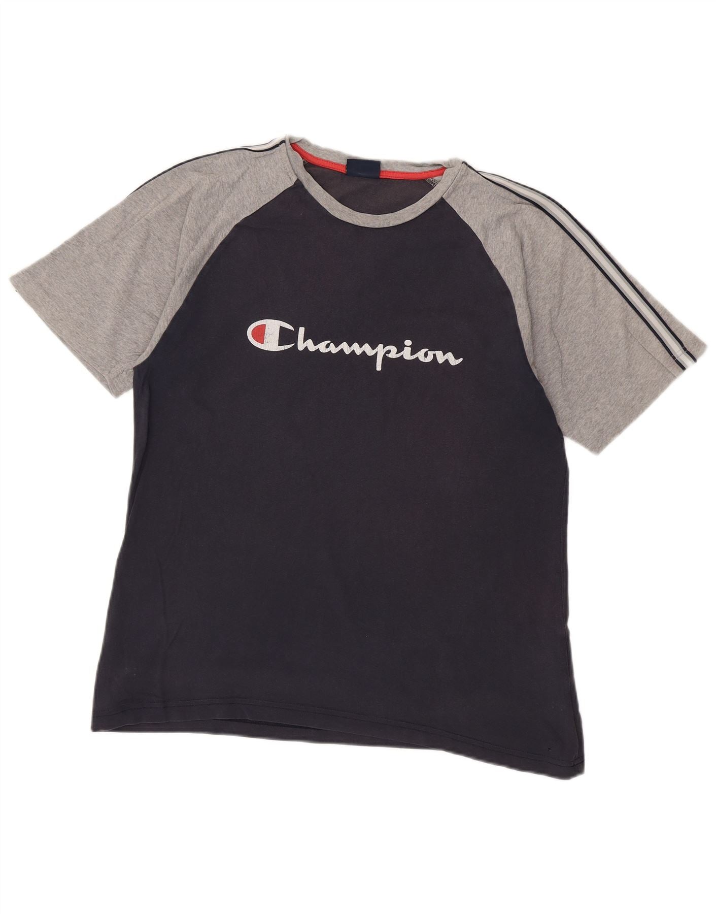 CHAMPION Womens Graphic T-Shirt Top UK 16 Large Navy Blue Colourblock