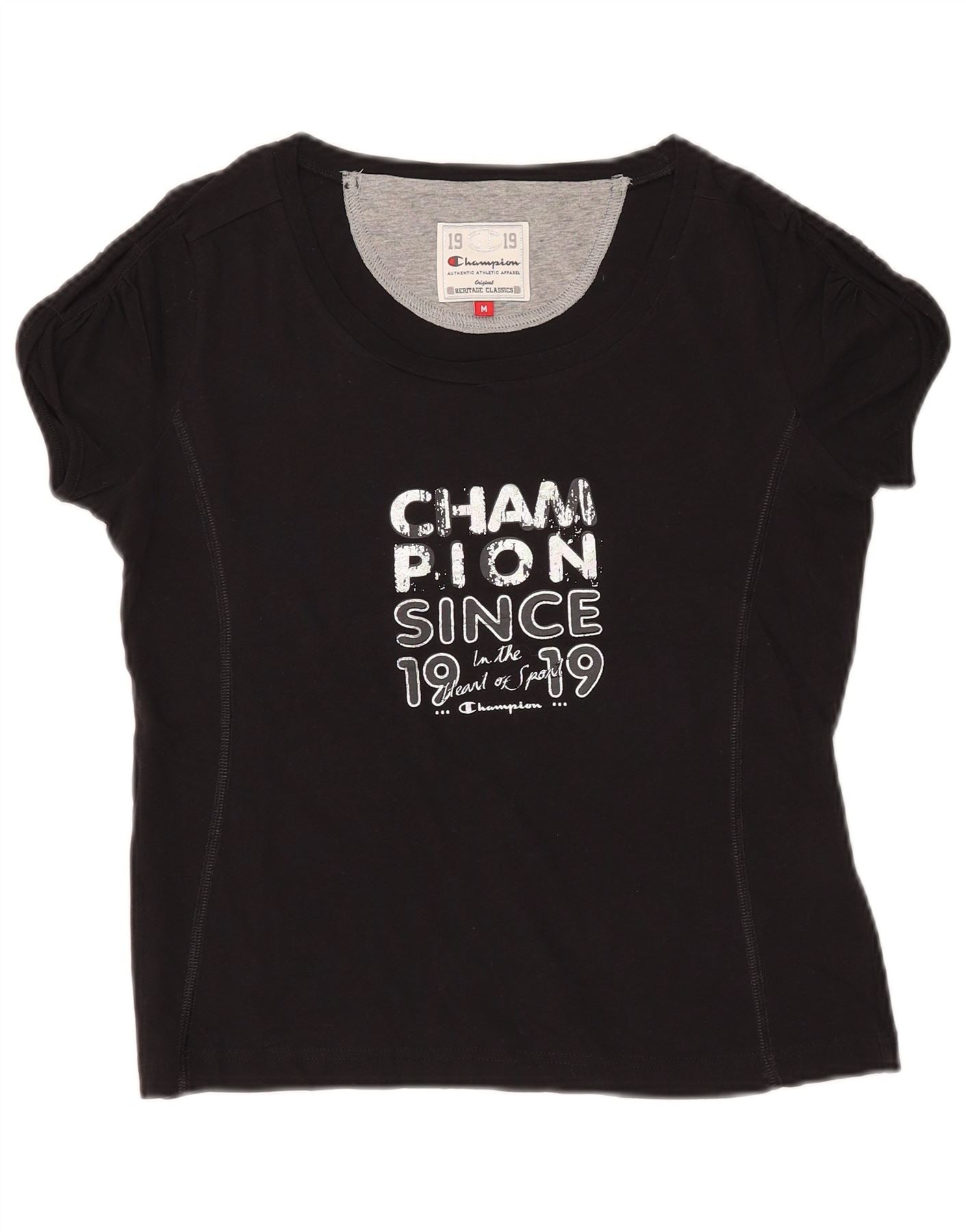 CHAMPION Womens Heritage Classics Graphic T-Shirt Top UK 12 Medium Black