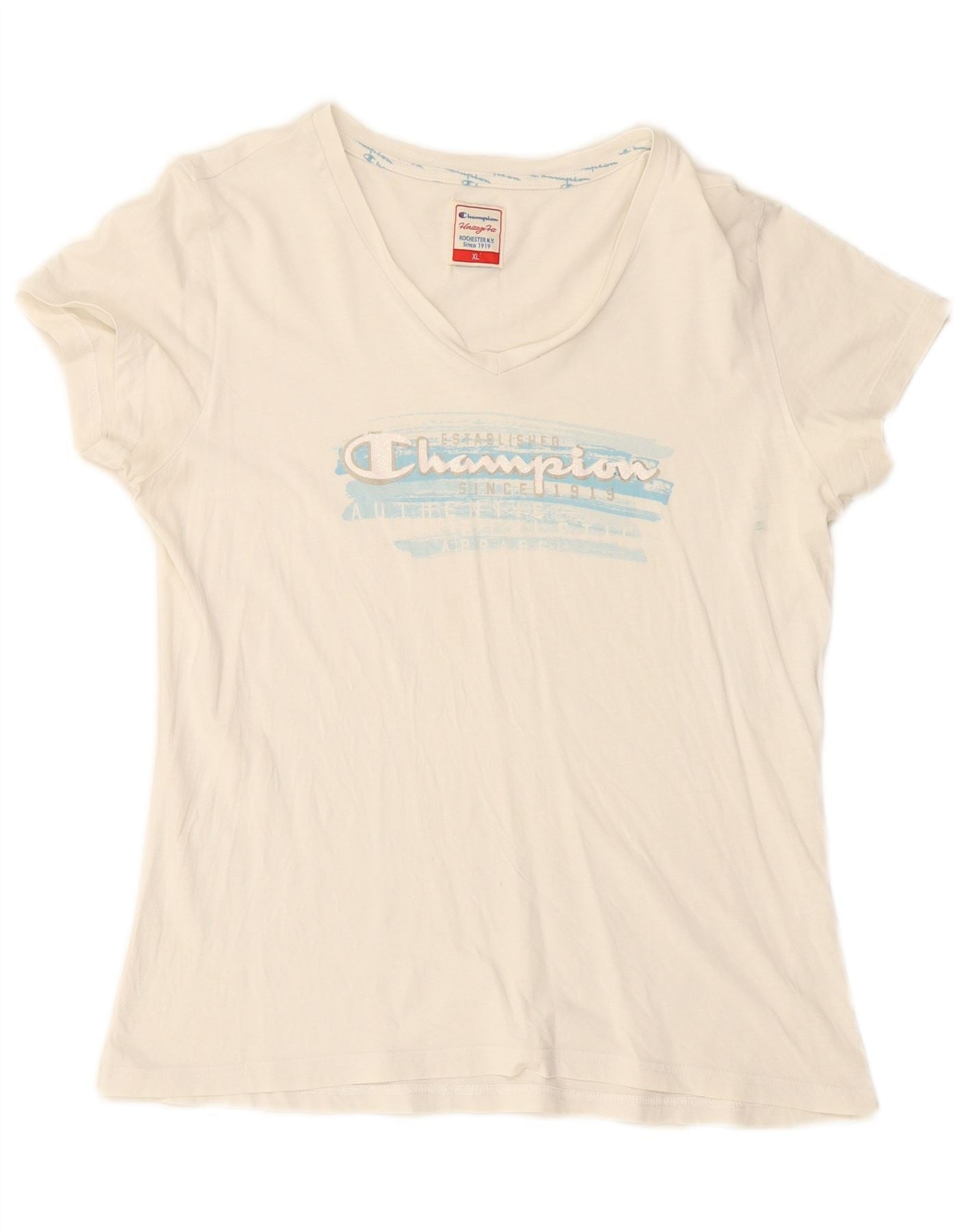 Home > Vintage Champion Clothing > Women's > T-Shirts > CHAMPION Womens Heritage Fit Graphic T-Shirt Top UK 18 XL White