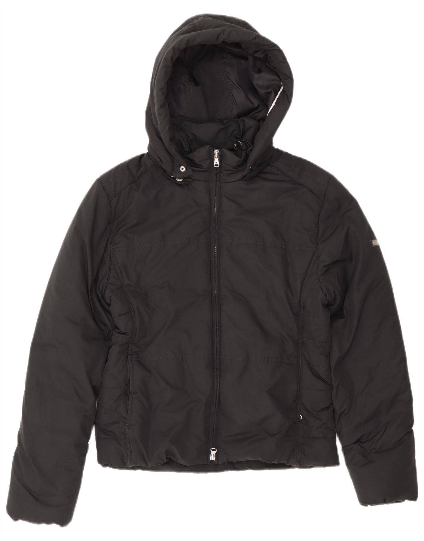 CHAMPION Womens Hooded Padded Jacket UK 14 Medium Black Polyester