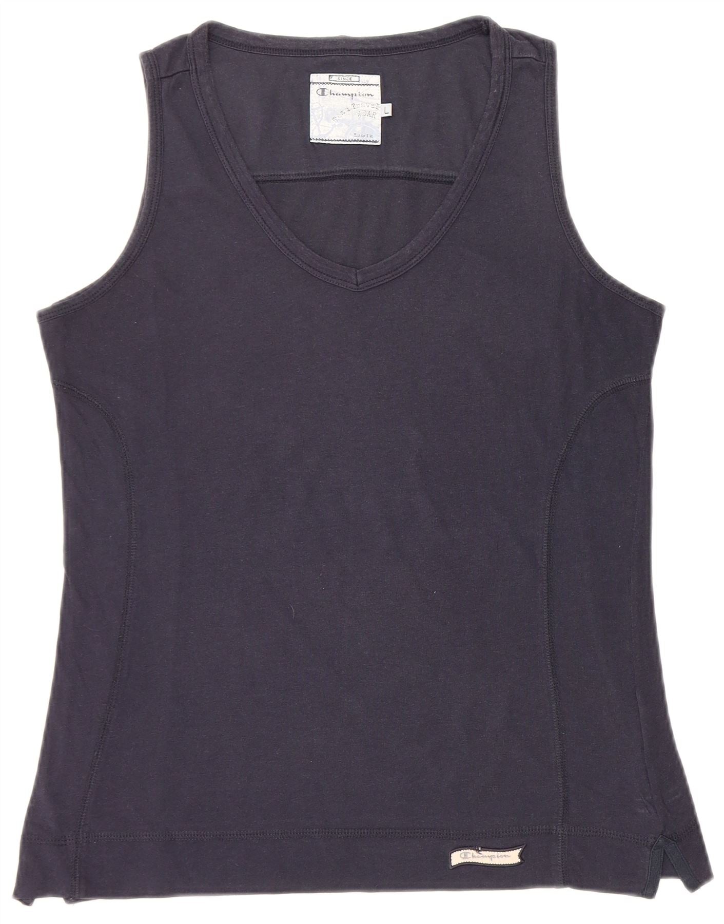 CHAMPION Womens Vest Top UK 14 Large Navy Blue