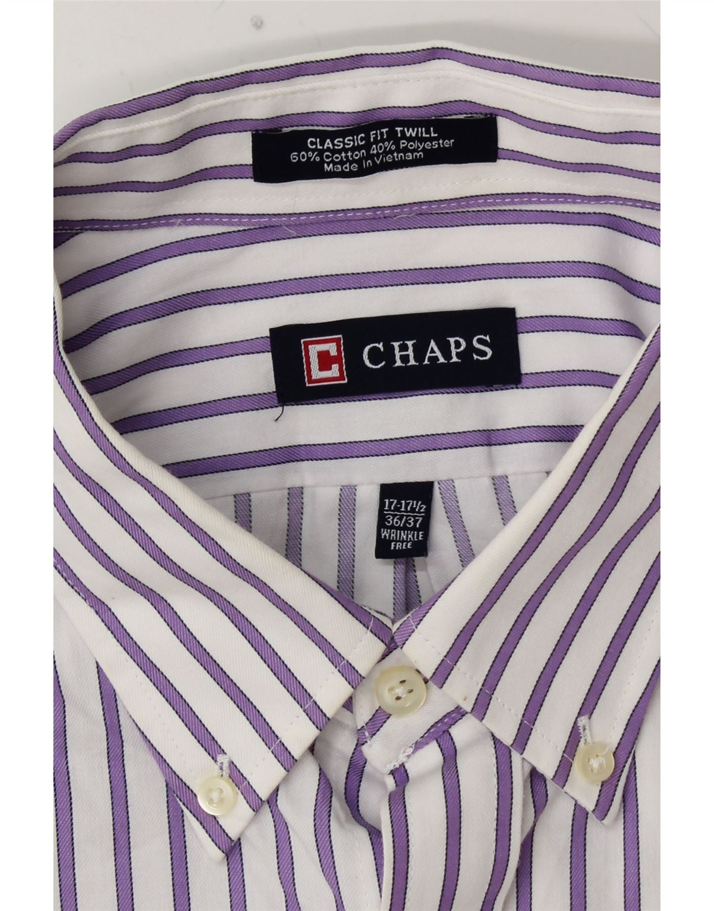 CHAPS Mens Classic Fit Shirt Size 17 17 1/2 XL Purple Striped Cotton