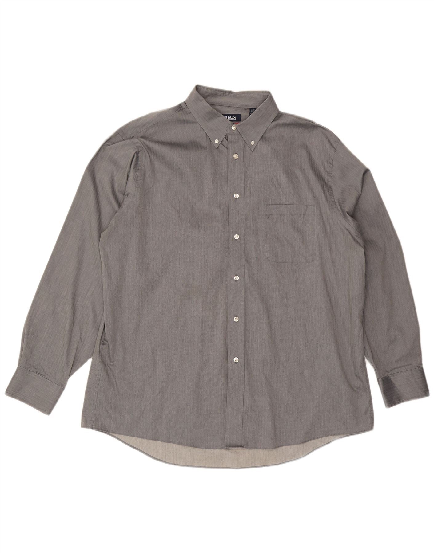 CHAPS Mens Regular Fit Shirt Size 17 1/2 XL Grey Herringbone Cotton