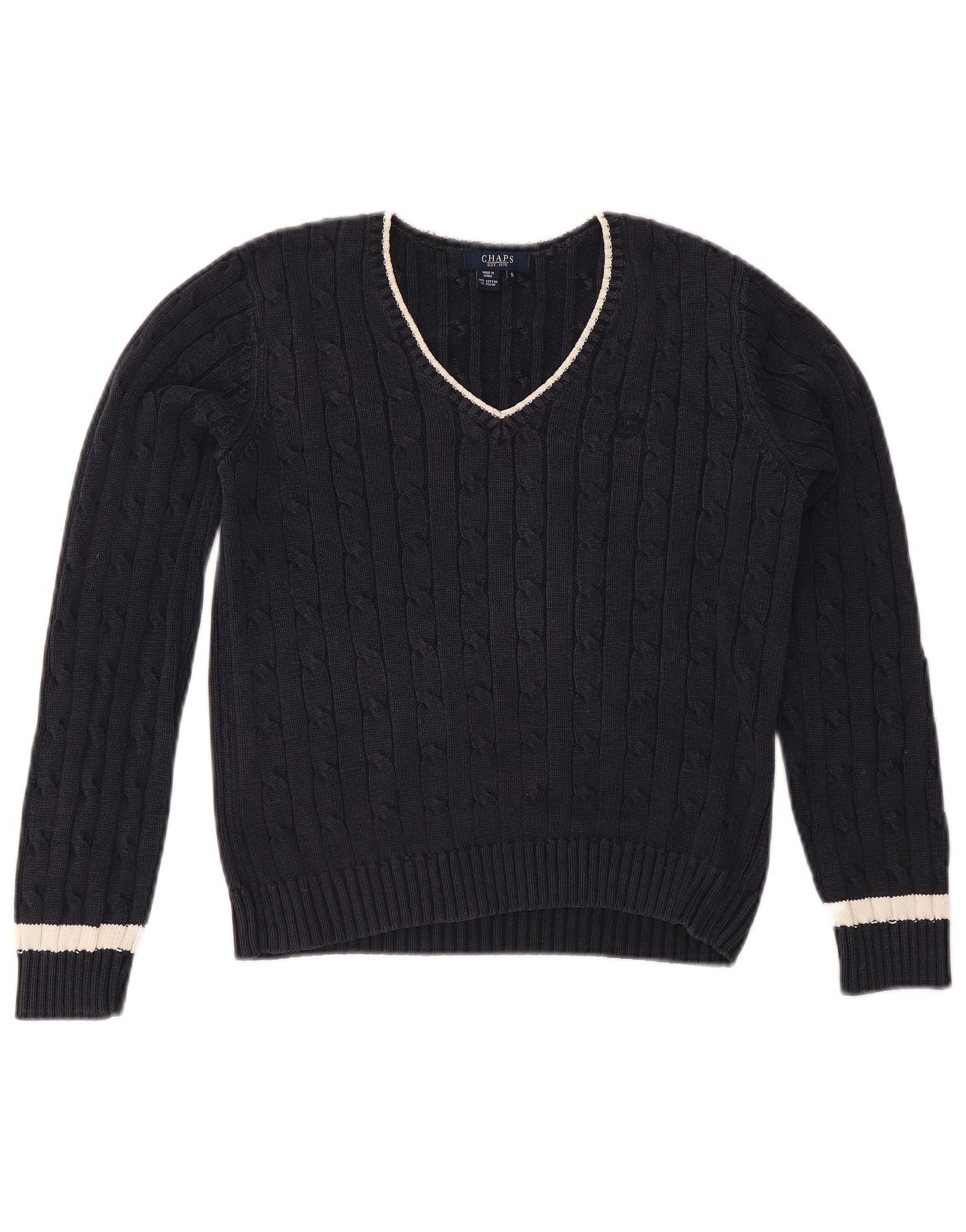 CHAPS Womens Crop V-Neck Jumper Sweater UK 10 Small Navy Blue Cotton