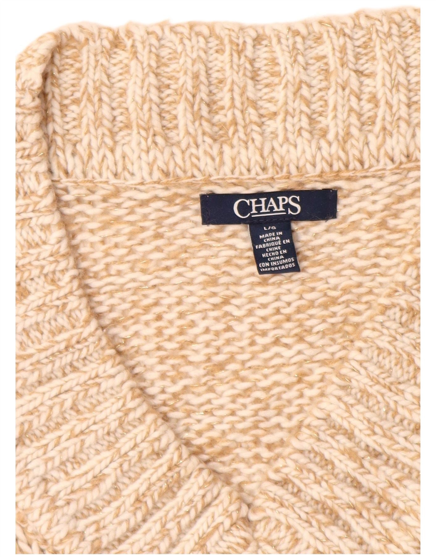 CHAPS Womens V-Neck Jumper Sweater UK 16 Large Beige Flecked Acrylic