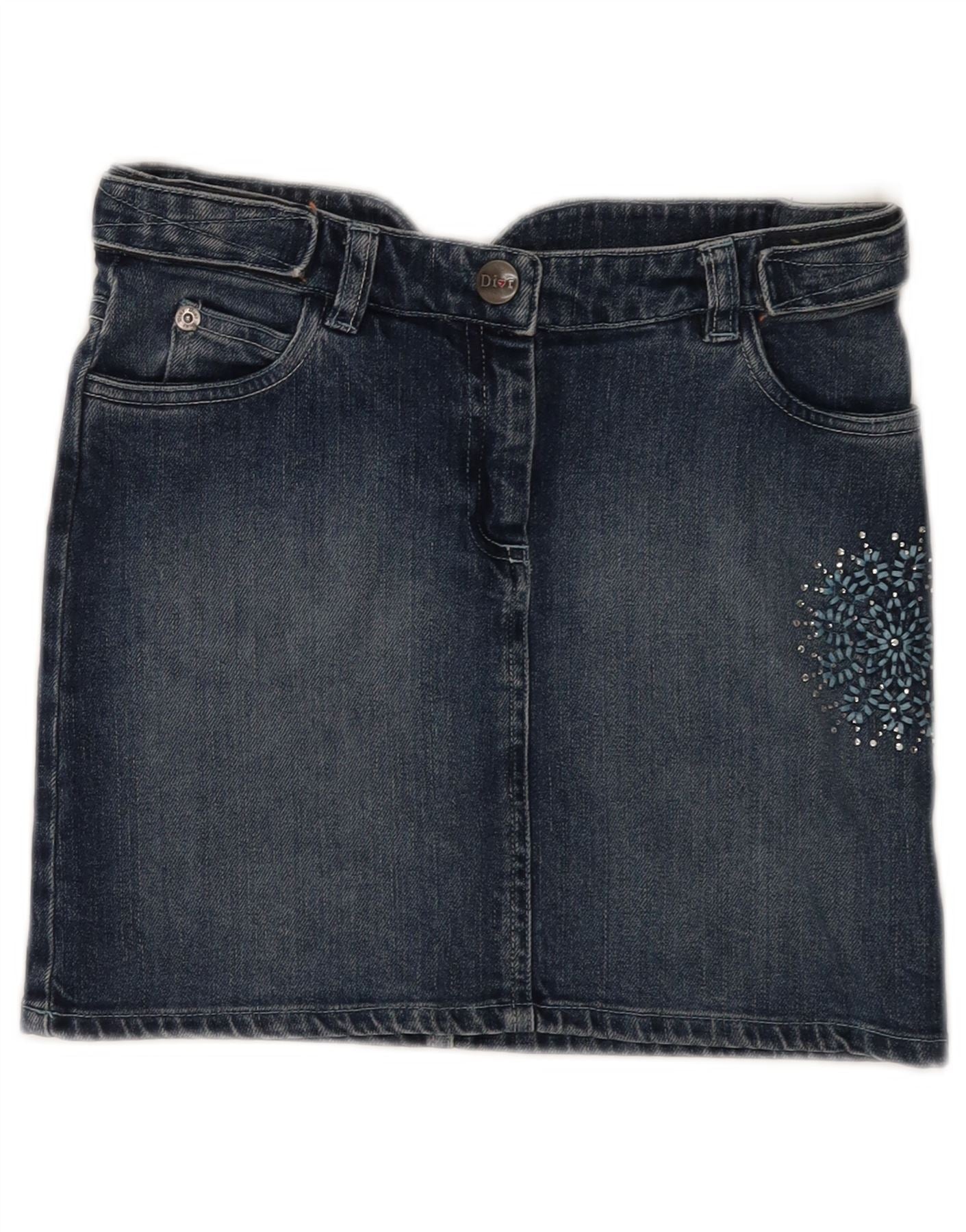 CHRISTIAN DIOR Girls Mini Denim Skirt 9-10 Years W25 Blue Floral Cotton