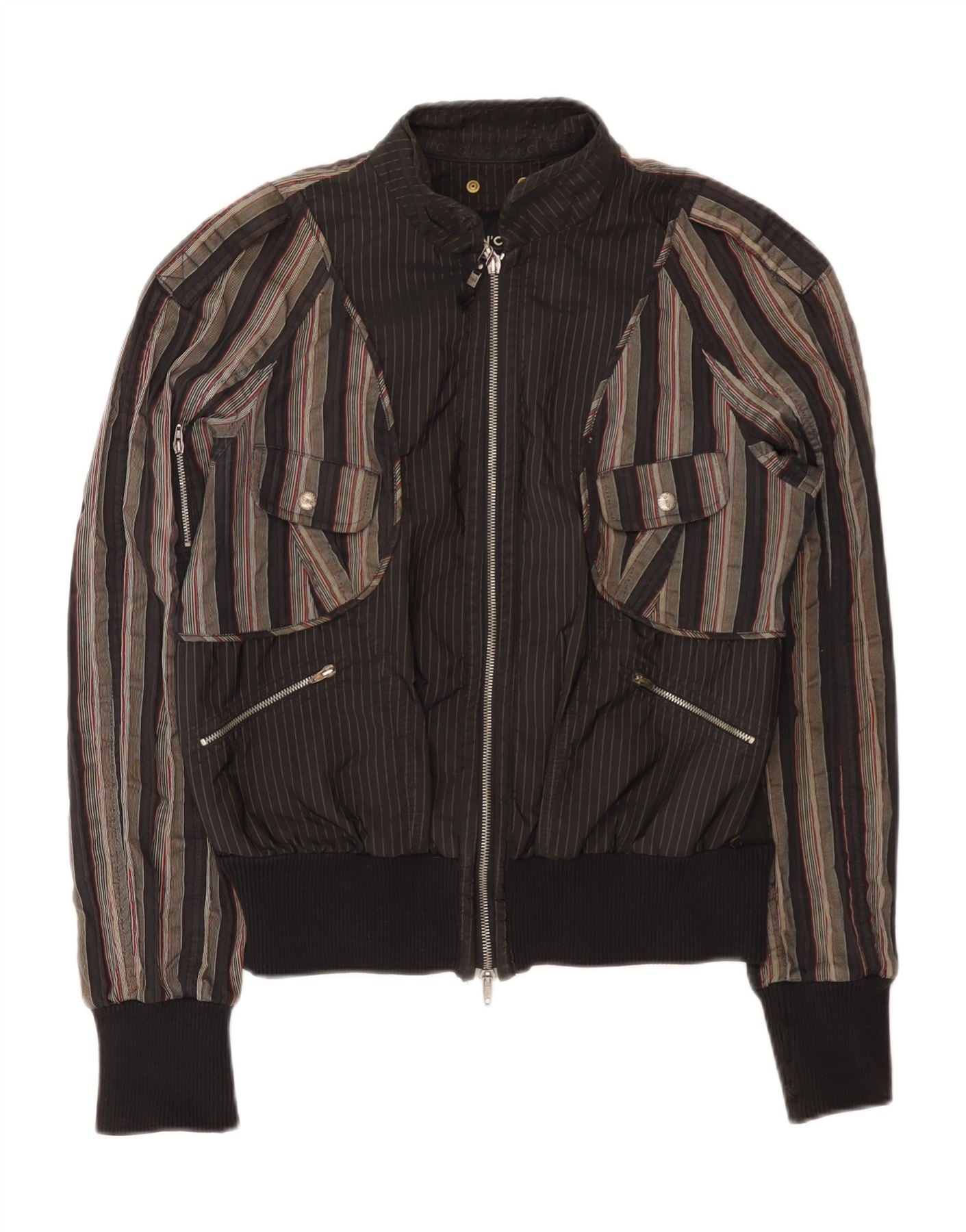 CNC COSTUME NATIONAL Mens Bomber Jacket IT 36 Small Black Striped Cotton