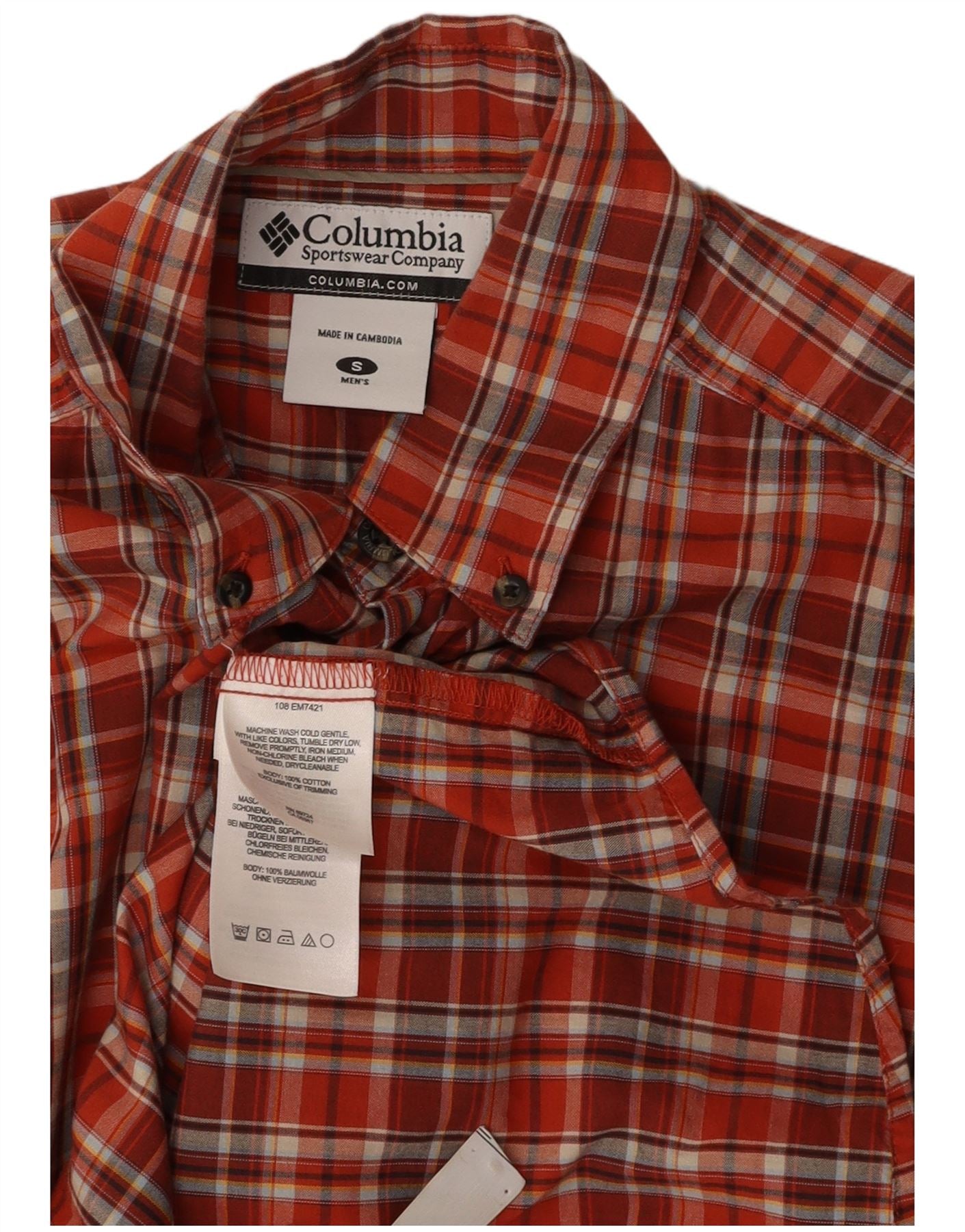 COLUMBIA Mens Short Sleeve Shirt Small Red Check Cotton