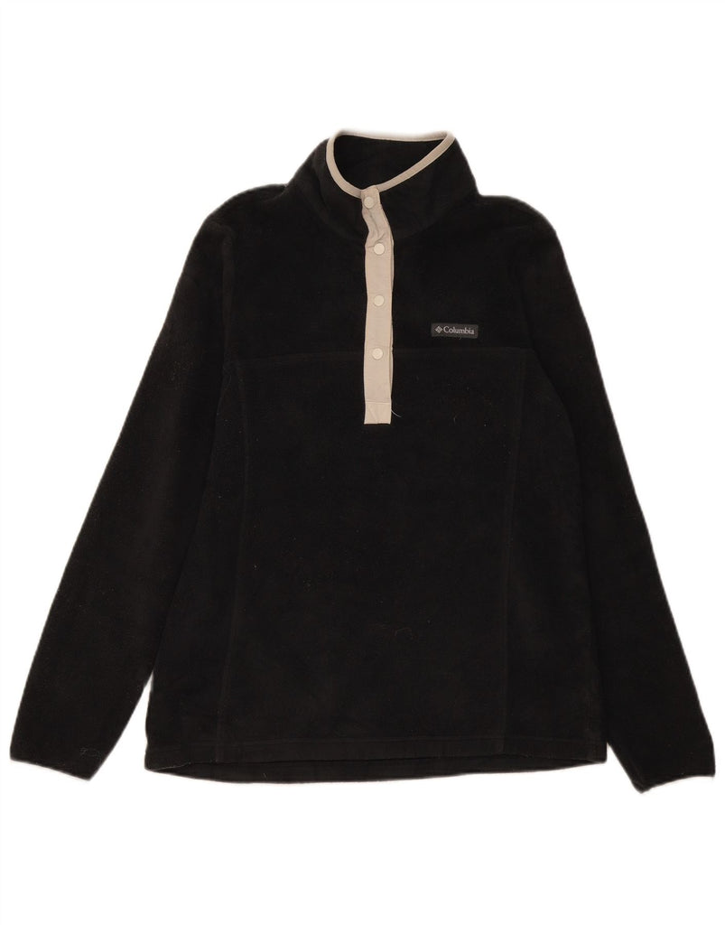 COLUMBIA Womens Button Neck Fleece Jumper UK 14 Medium Black Polyester
