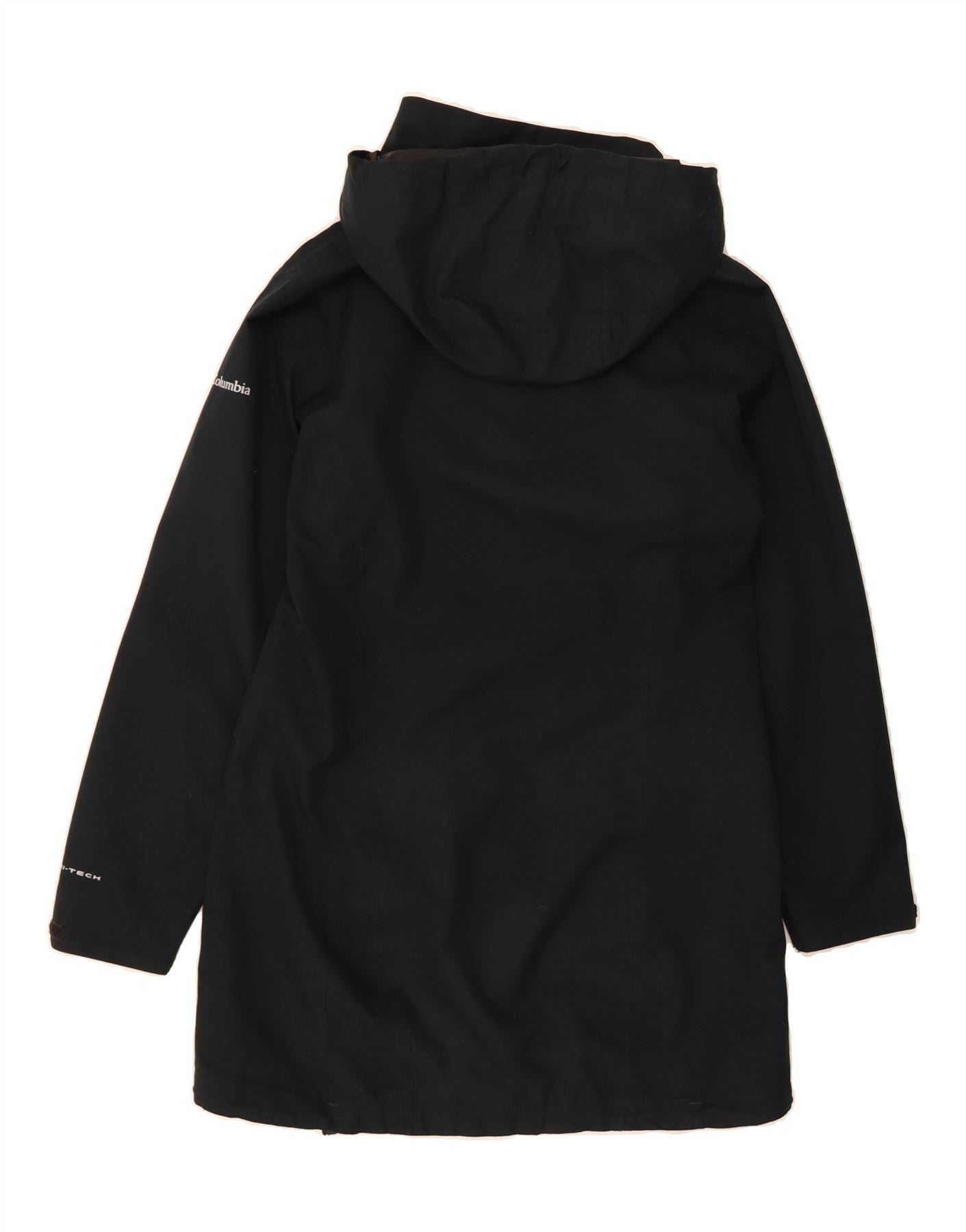 - AI Description: This pre-owned Columbia raincoat is a classic and practical choice for women. In excellent condition, this black, regular-fit coat features long sleeves, a zip closure and a woven fabric. It is hooded, waterproof and lined for extra protection. Accented with the brand logo, it also boasts zipped pockets for secure storage. Size M.