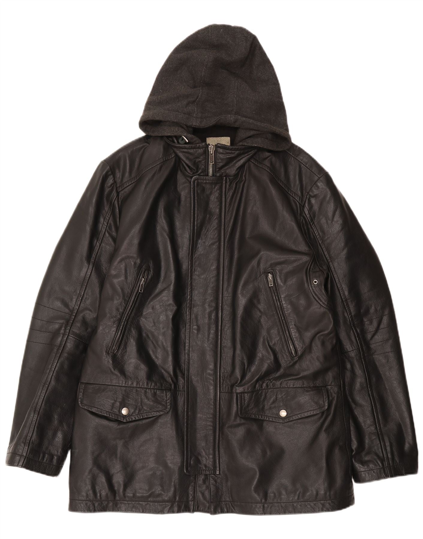 CONBIPEL Mens Hooded Leather Jacket IT 52 XL Black Leather
