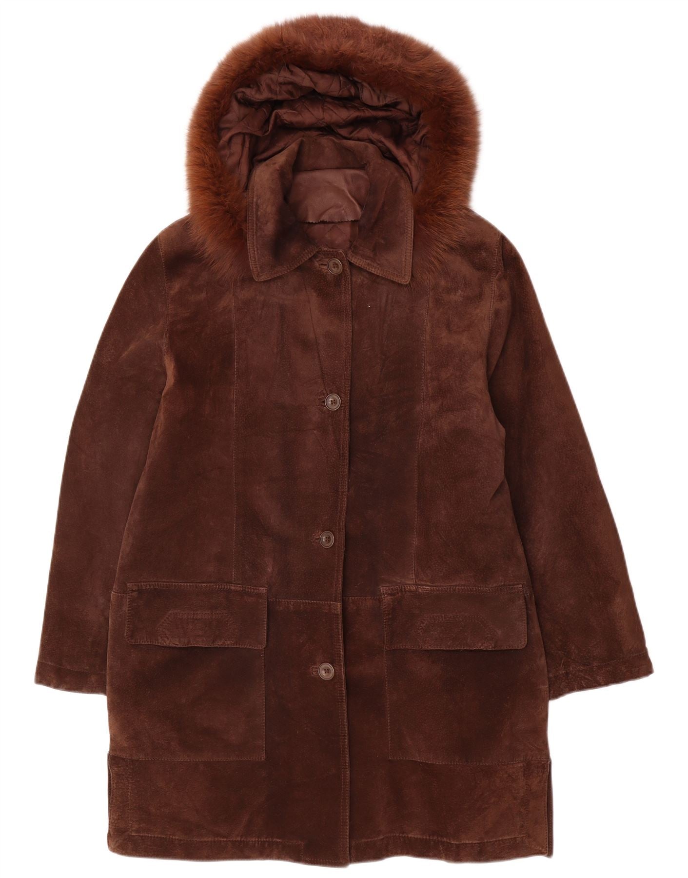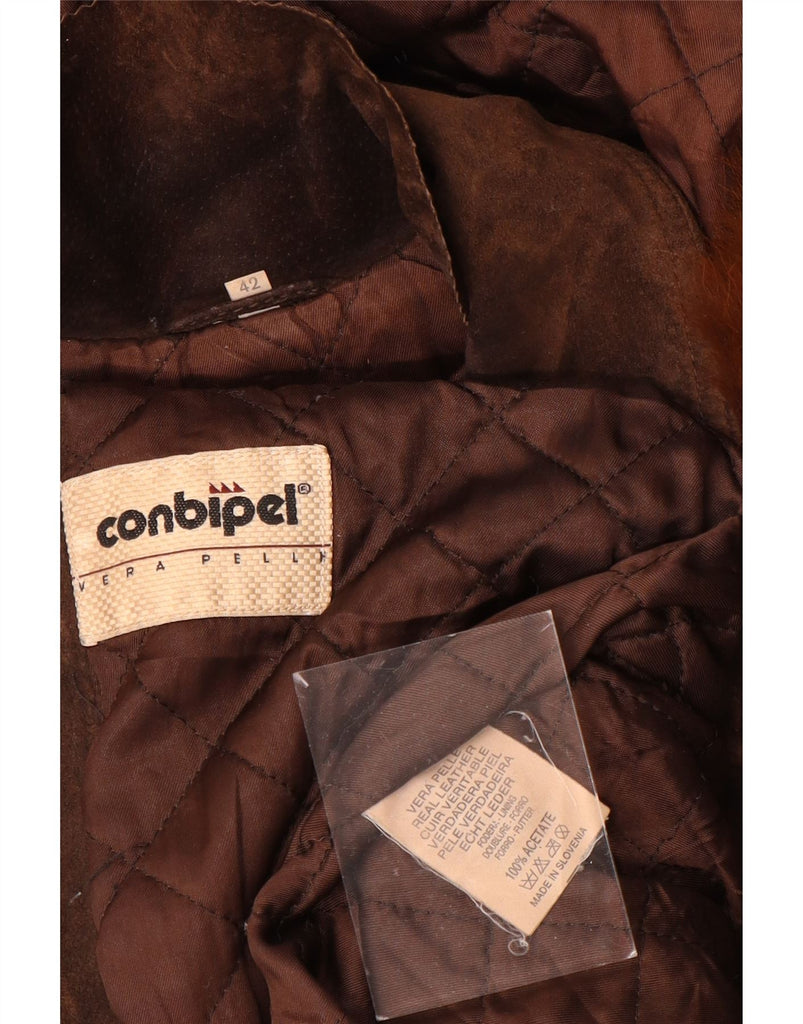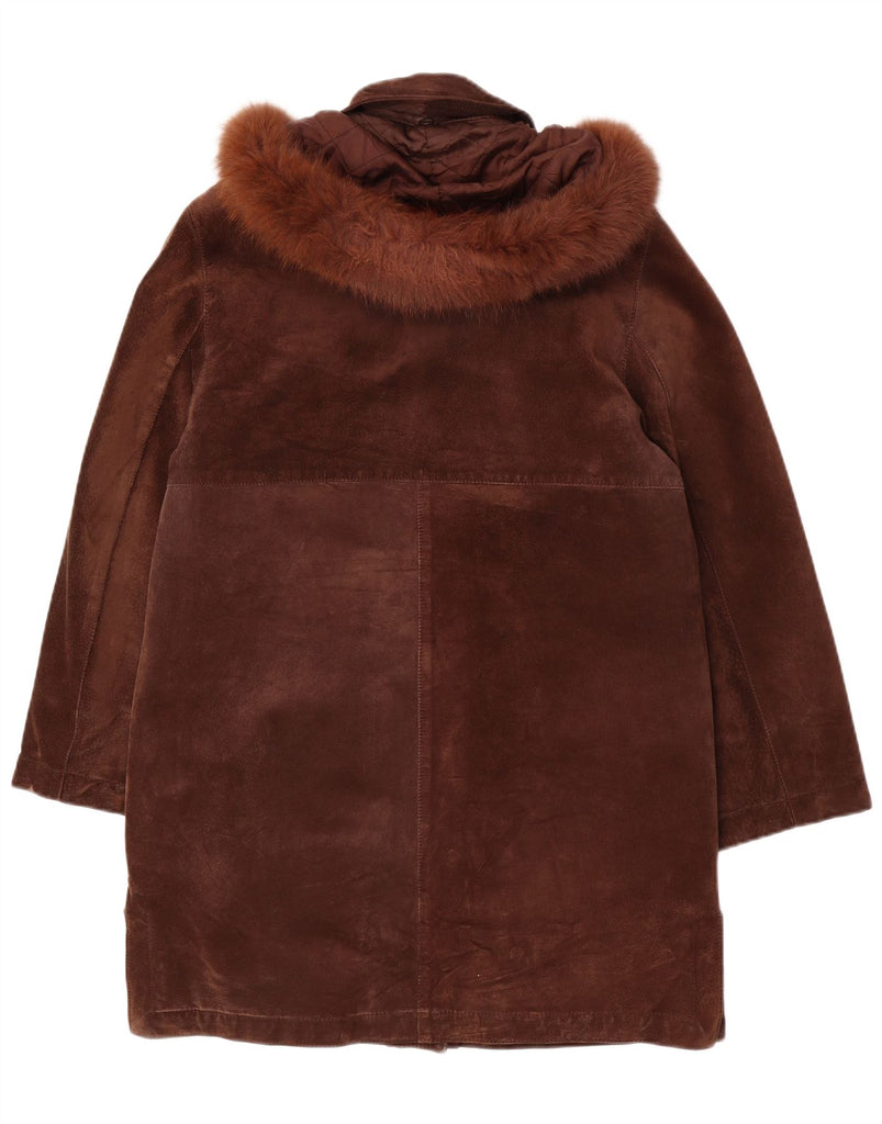 CONBIPEL Womens Hooded Suede Overcoat IT 42 Medium Brown Leather