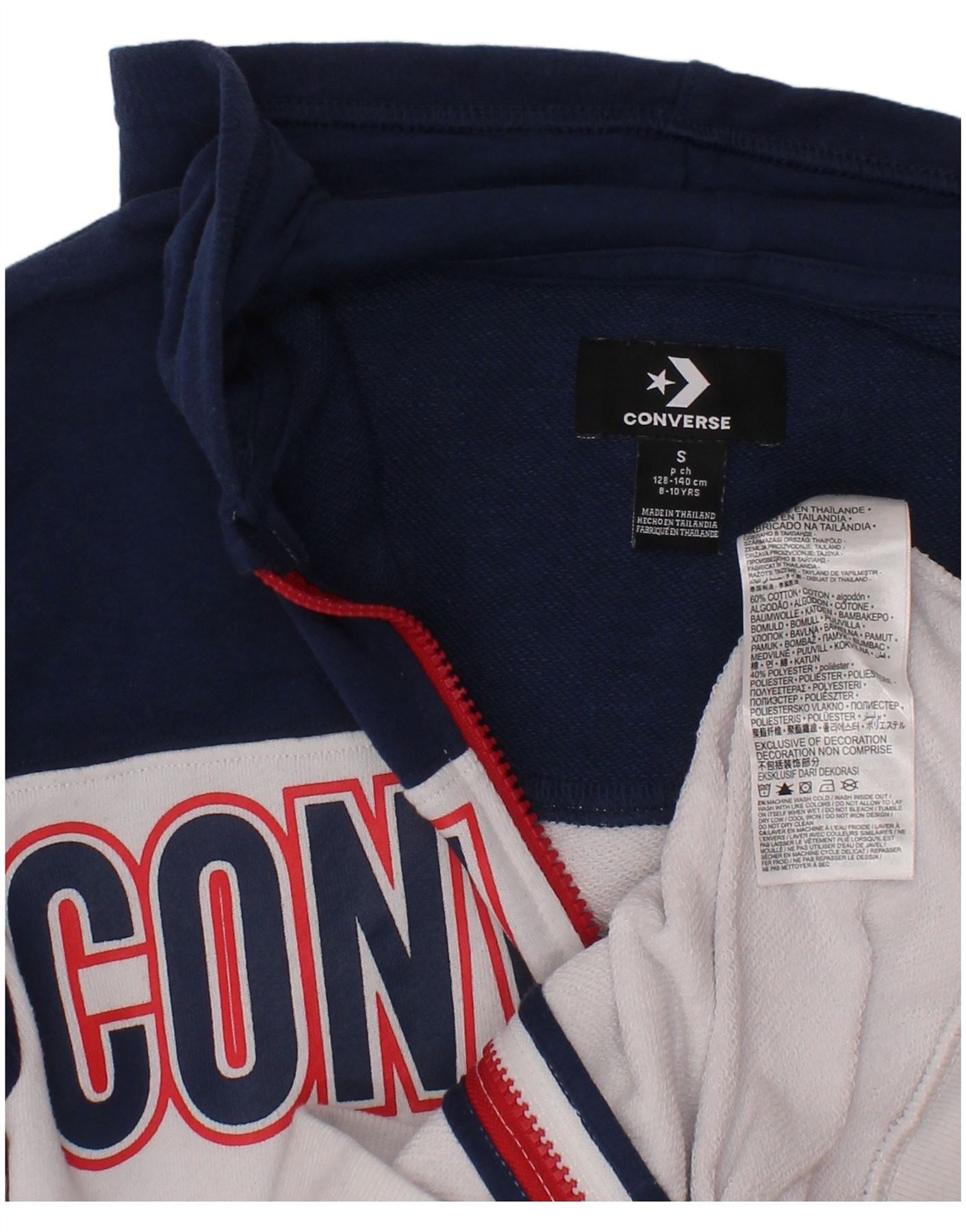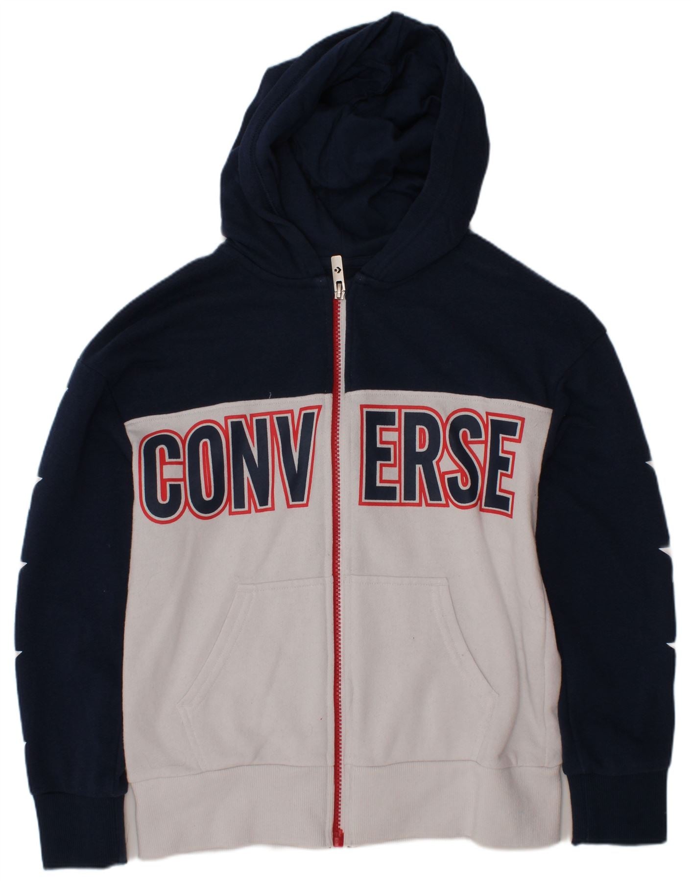 CONVERSE Boys Zip Hoodie Sweater 8-9 Years Small Navy Blue Colourblock