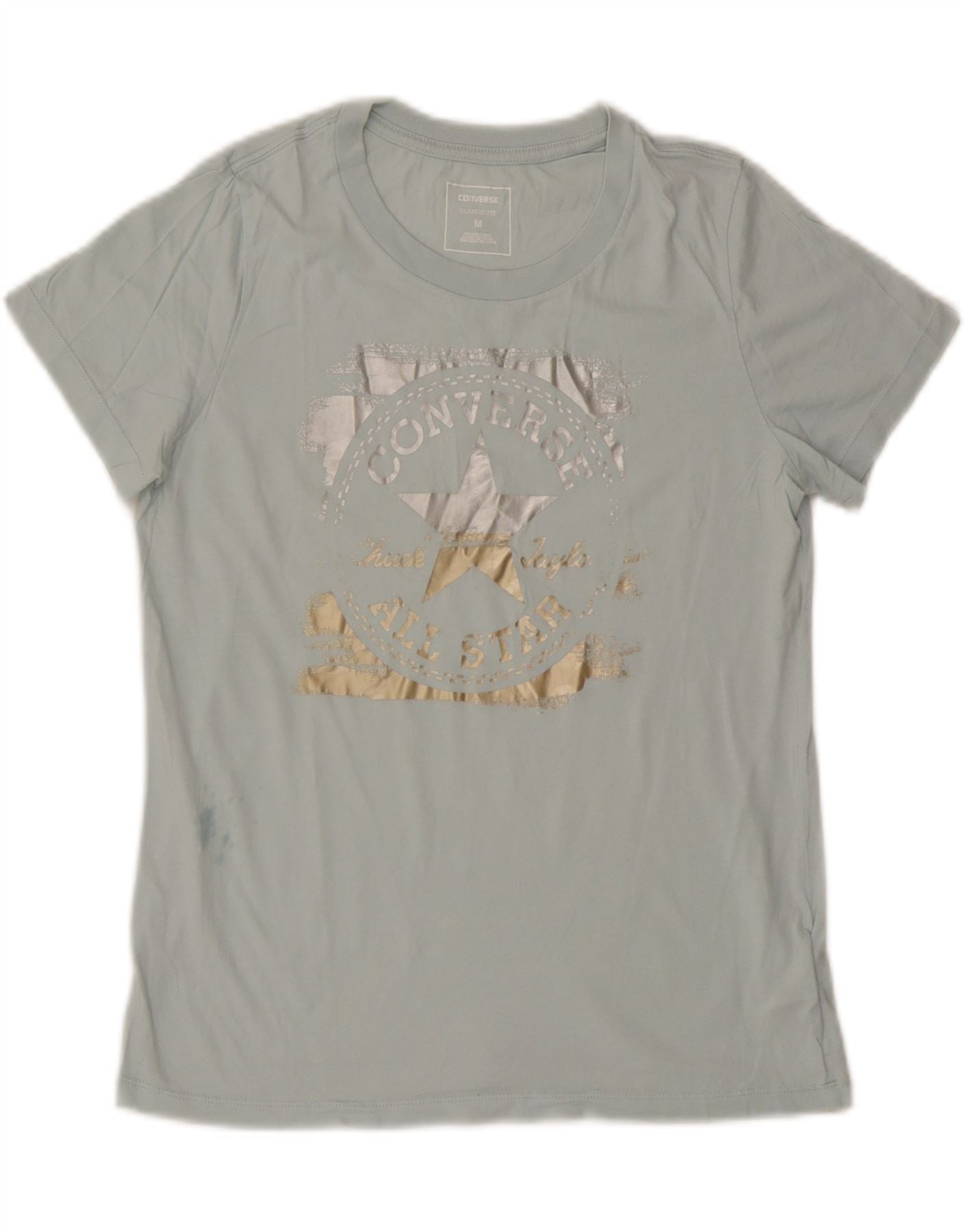 CONVERSE Womens Classic Fit Graphic T-Shirt Top UK 12 Medium Blue Cotton