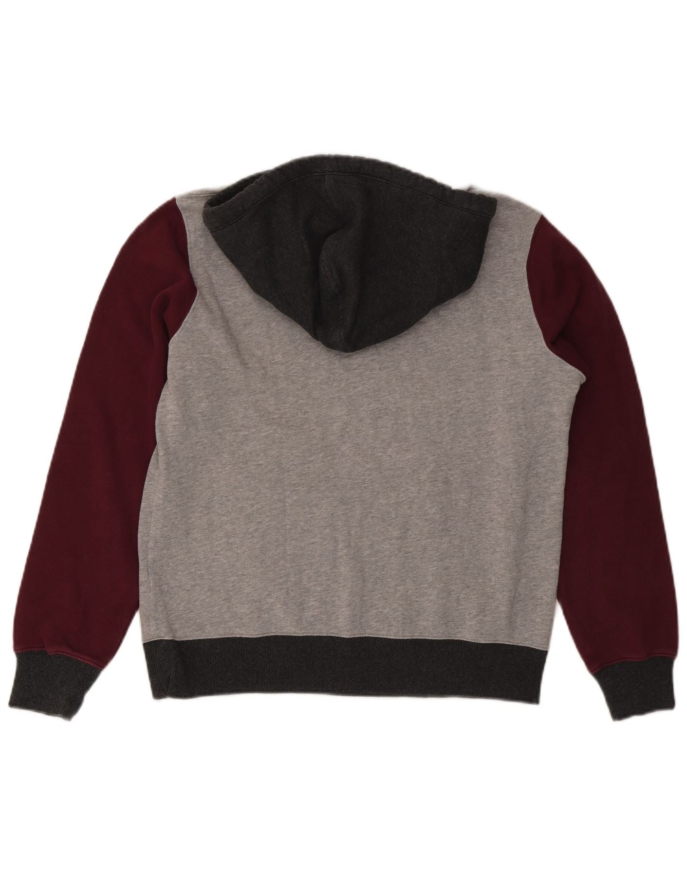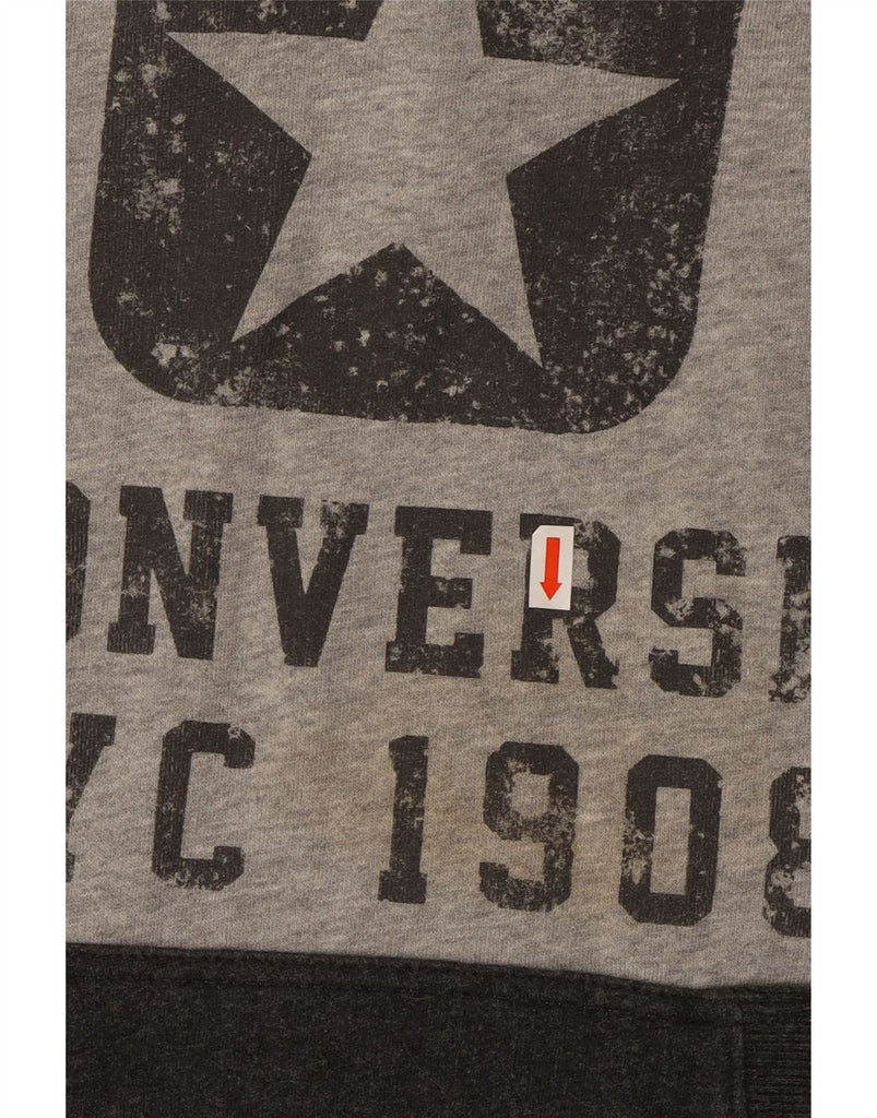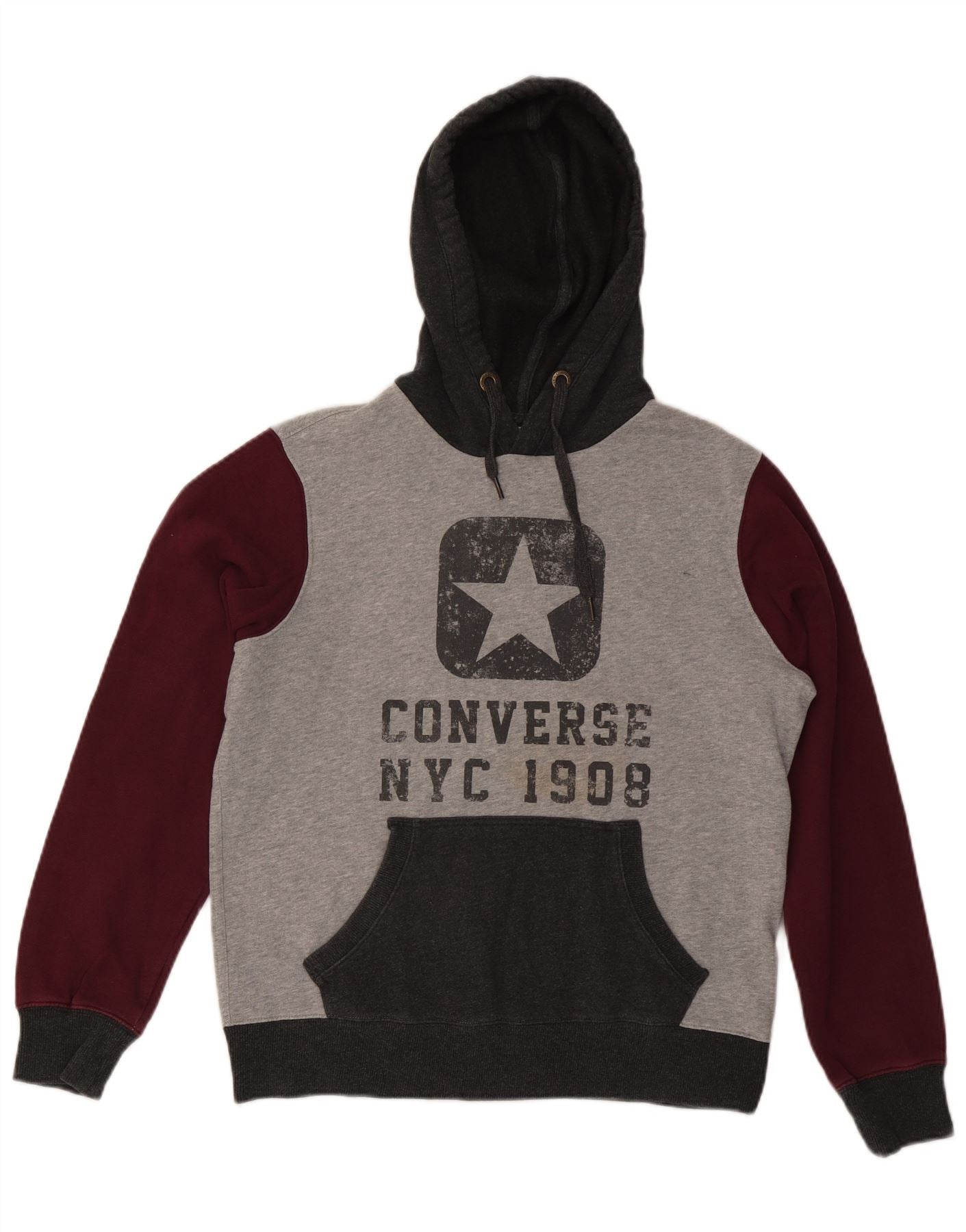 CONVERSE Womens Graphic Hoodie Jumper UK 16 Large Grey Colourblock Cotton