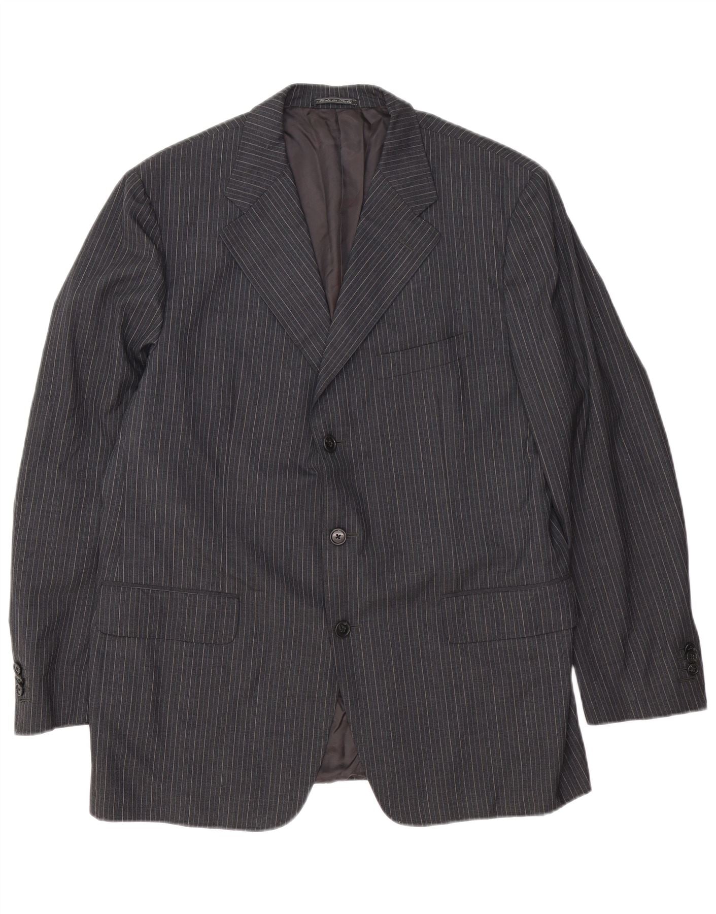 Corneliani Mens 3 Button Blazer Jacket IT 54 2XL Grey Pinstripe Virgin Wool