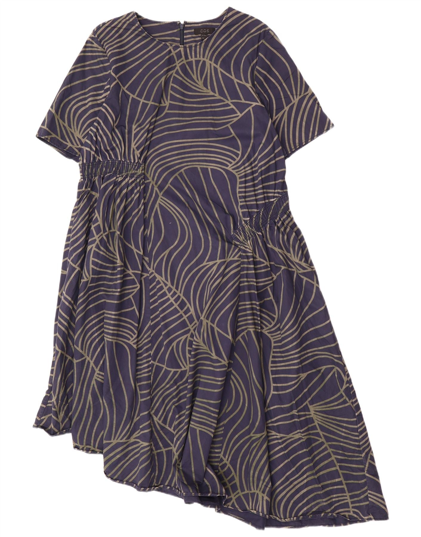 COS Womens Asymmetrical Dress EU 42 Large Navy Blue Geometric Cotton