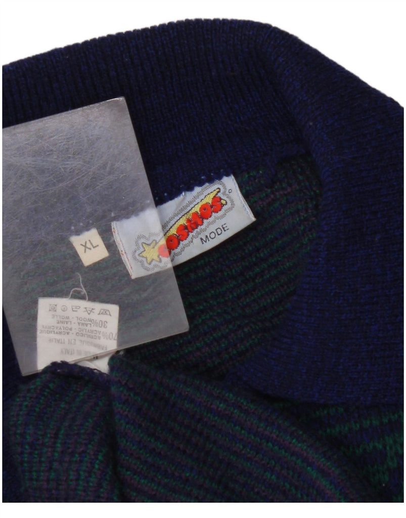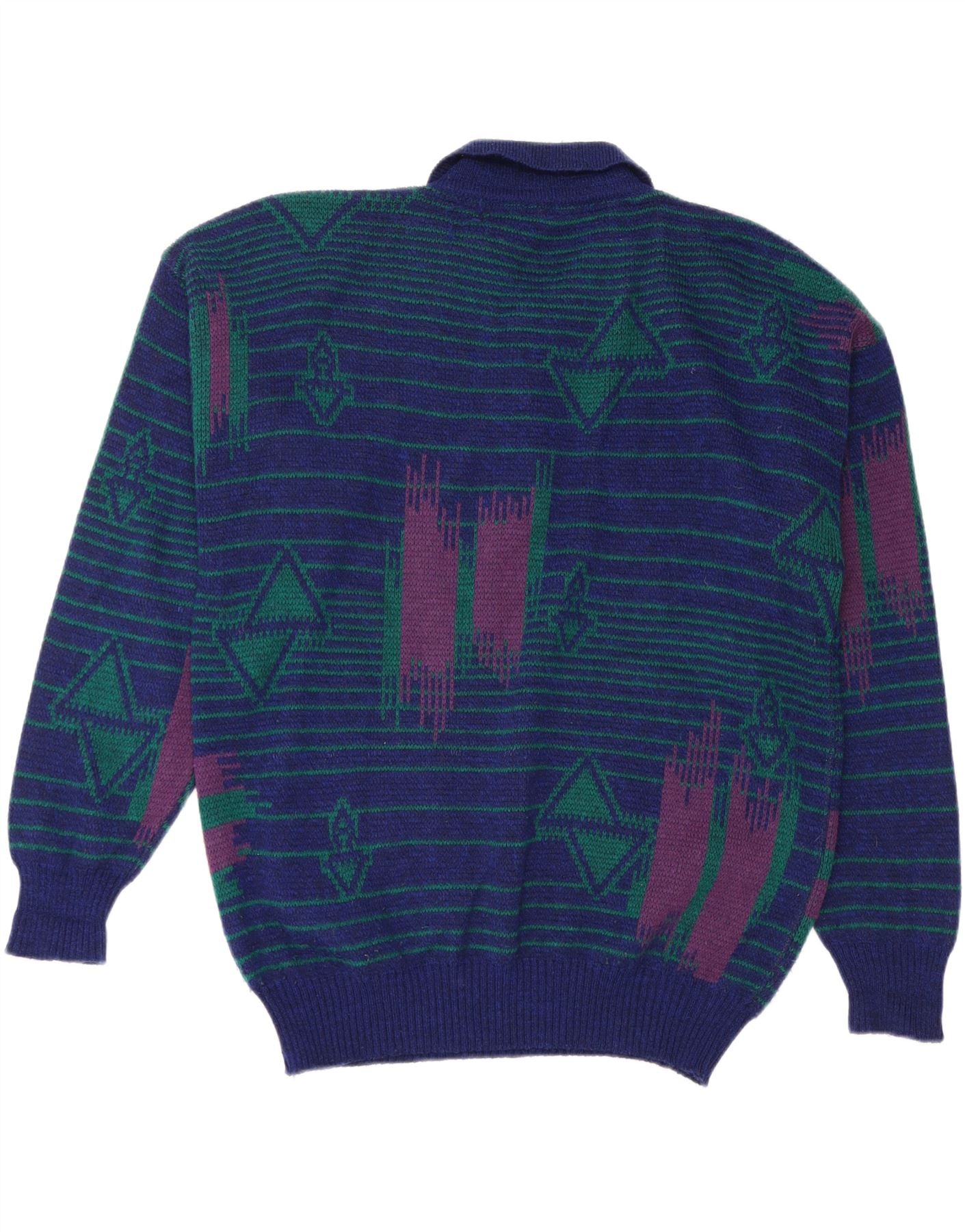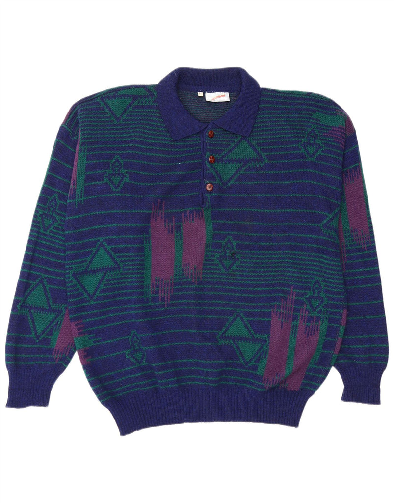 COSMOS Mens Polo Neck Jumper Sweater XL Navy Blue Geometric Acrylic