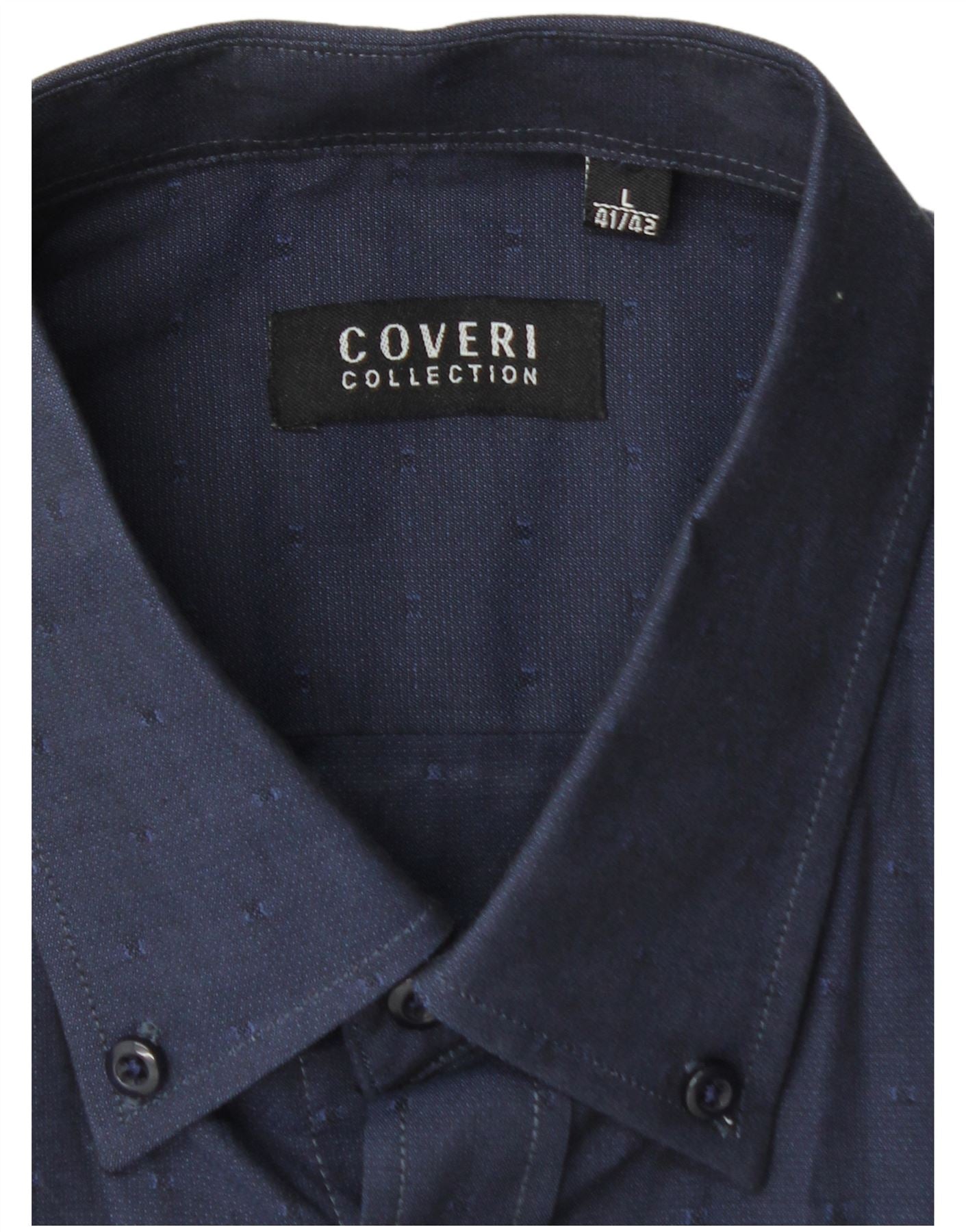 COVERI Mens Shirt Size 41/42 Large Navy Blue Cotton