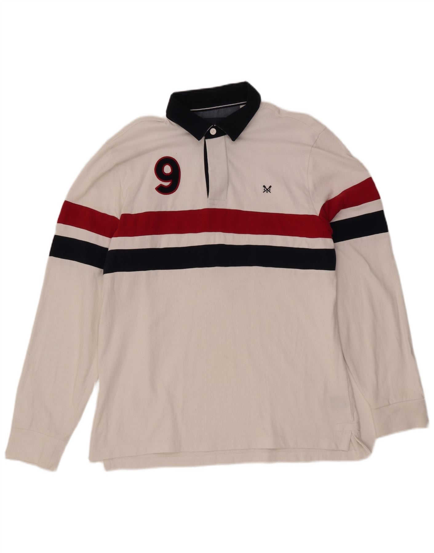 CREW CLOTHING Mens Graphic Rugby Polo Shirt Large White Colourblock