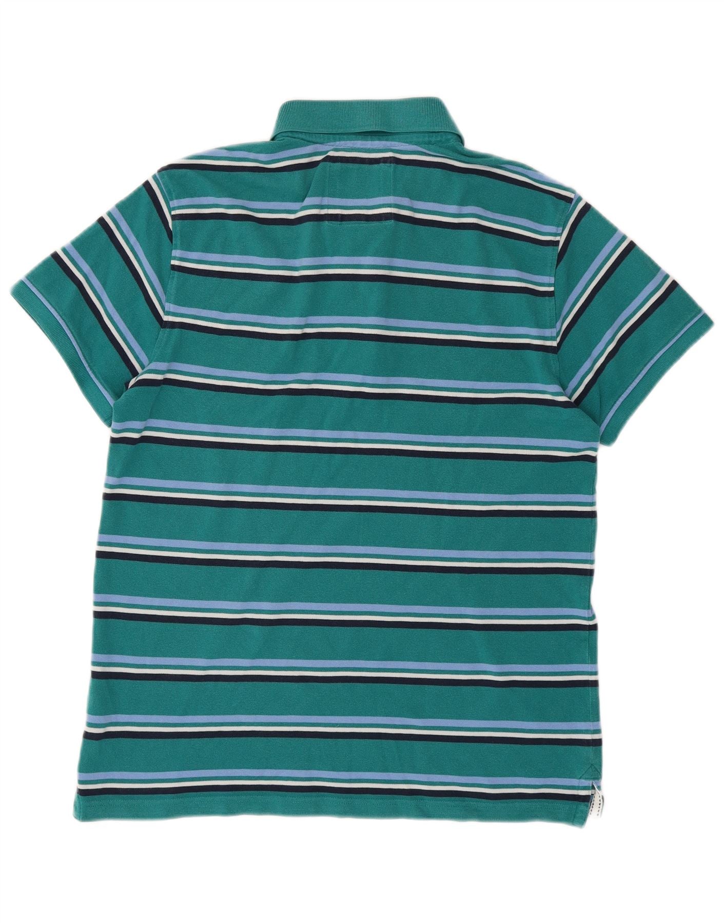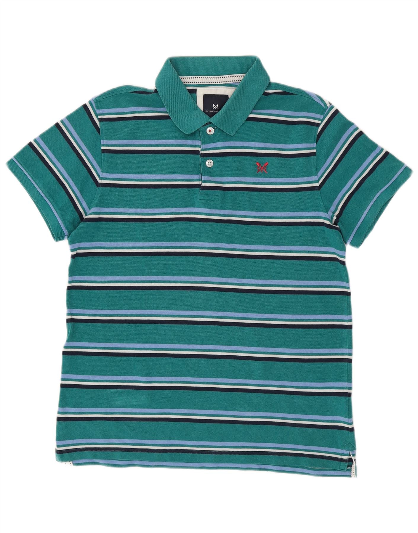 CREW CLOTHING Mens Polo Shirt Medium Green Striped Cotton