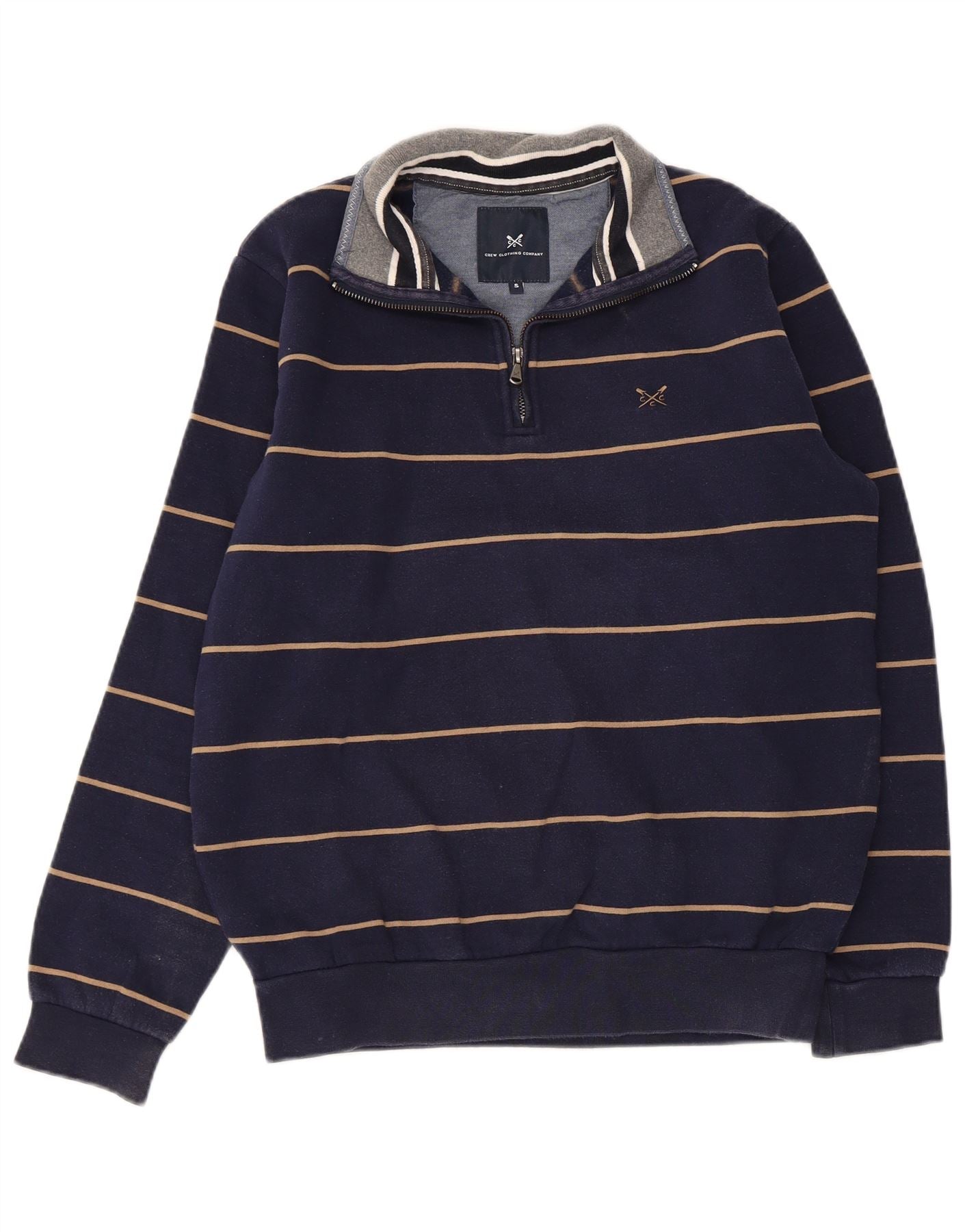 CREW CLOTHING Mens Zip Neck Sweatshirt Jumper Small Navy Blue Striped