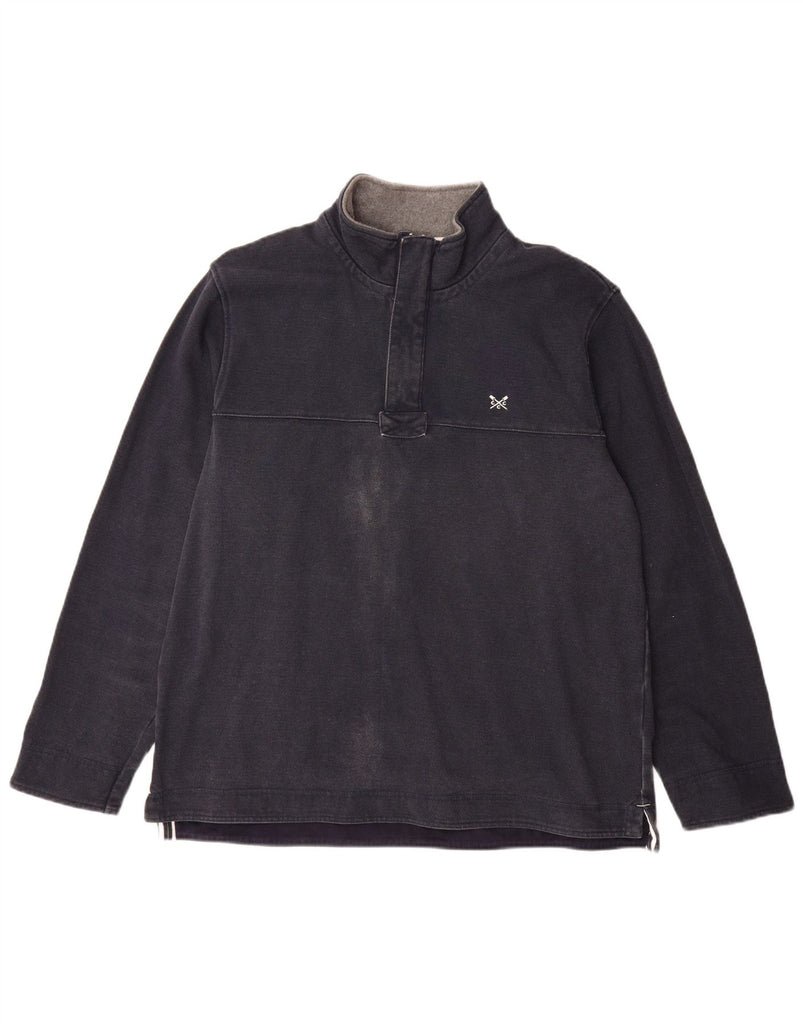 CREW CLOTHING Mens Zip Neck Sweatshirt Jumper XL Navy Blue Cotton
